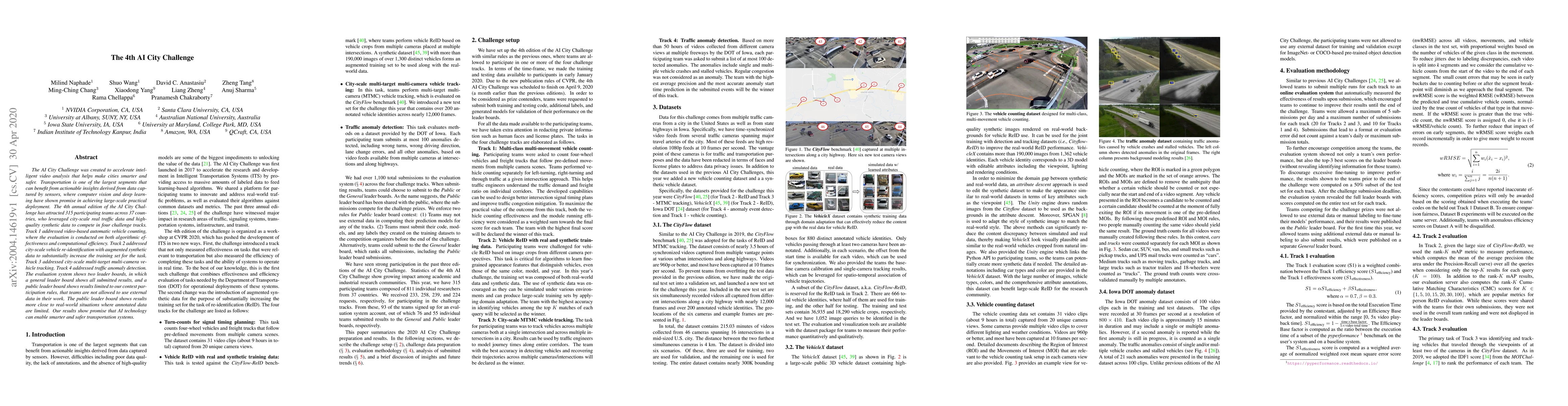 The 4th AI City Challenge aimed to advance intelligent video analysis for smarter and safer cities, with 315 teams from 37 countries competing in four tracks: vehicle counting, re-identification, multi-target tracking, and traffic anomaly detection. The evaluation highlighted the potential of AI to enhance transportation systems, especially when adhering to data usage constraints.