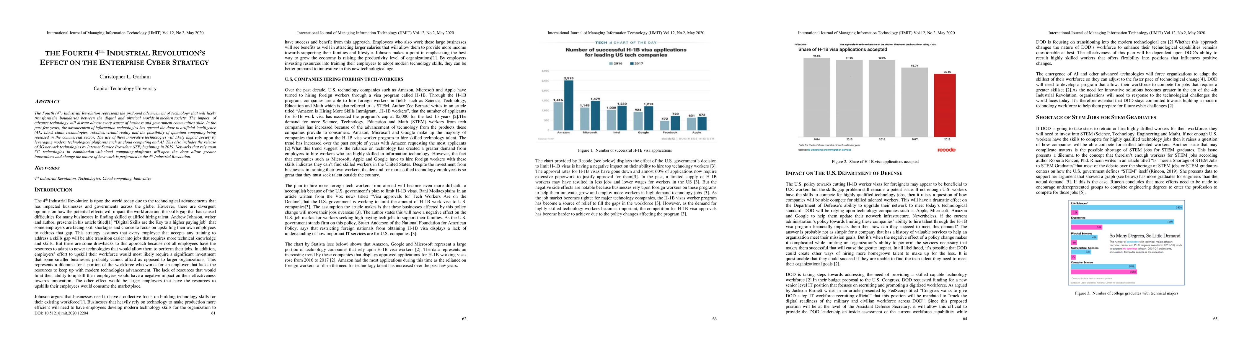 The Fourth (4th) Industrial Revolution represents the profound advancement of technology that will likely transform the boundaries between the digital and physical worlds in modern society. The impact of advance technology will disrupt almost every aspect of business and government communities alike. In the past few years, the advancement of information technologies has opened the door to artificial intelligence (AI), block chain technologies, robotics, virtual reality and the possibility of quantum computing being released in the commercial sector. The use of these innovative technologies will likely impact society by leveraging modern technological platforms such as cloud computing and AI. This also includes the release of 5G network technologies by Internet Service Providers (ISP) beginning in 2019. Networks that rely upon 5G technologies in combination with cloud computing platforms will open the door allow greater innovations and change the nature of how work is performed in the 4th Industrial Revolution.