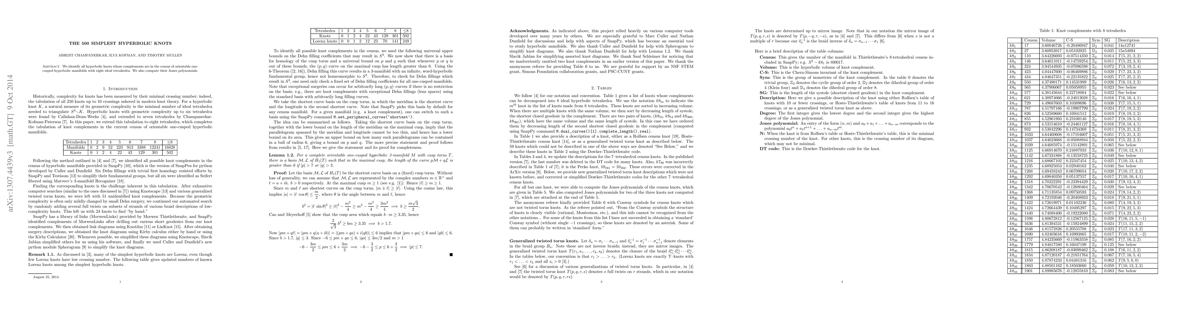 We identify all hyperbolic knots whose complements are in the census of orientable one-cusped hyperbolic manifolds with eight ideal tetrahedra. We also compute their Jones polynomials.