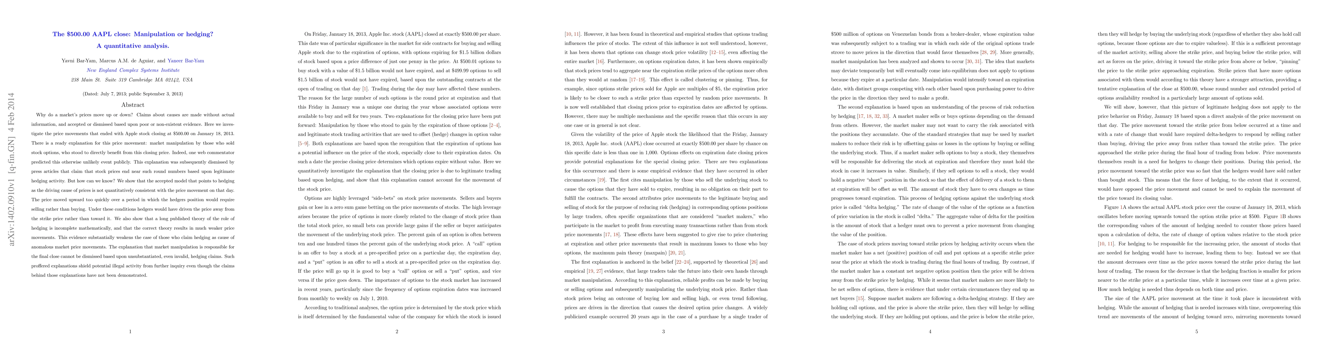 Why do a market's prices move up or down? Claims about causes are made without actual information, and accepted or dismissed based upon poor or non-existent evidence. Here we investigate the price movements that ended with Apple stock closing at \$500.00 on January 18, 2013. There is a ready explanation for this price movement: market manipulation by those who sold stock options, who stood to directly benefit from this closing price. Indeed, one web commentator predicted this otherwise unlikely event publicly. This explanation was subsequently dismissed by press articles that claim that stock prices end near such round numbers based upon legitimate hedging activity. But how can we know? We show that the accepted model that points to hedging as the driving cause of prices is not quantitatively consistent with the price movement on that day. The price moved upward too quickly over a period in which the hedgers' position would require selling rather than buying. Under these conditions hedgers would have driven the price away from the strike price rather than toward it. We also show that a long published theory of the role of hedging is incomplete mathematically, and that the correct theory results in much weaker price movements. This evidence substantially weakens the case of those who claim hedging as cause of anomalous market price movements. The explanation that market manipulation is responsible for the final close cannot be dismissed based upon unsubstantiated, even invalid, hedging claims. Such proffered explanations shield potential illegal activity from further inquiry even though the claims behind those explanations have not been demonstrated.