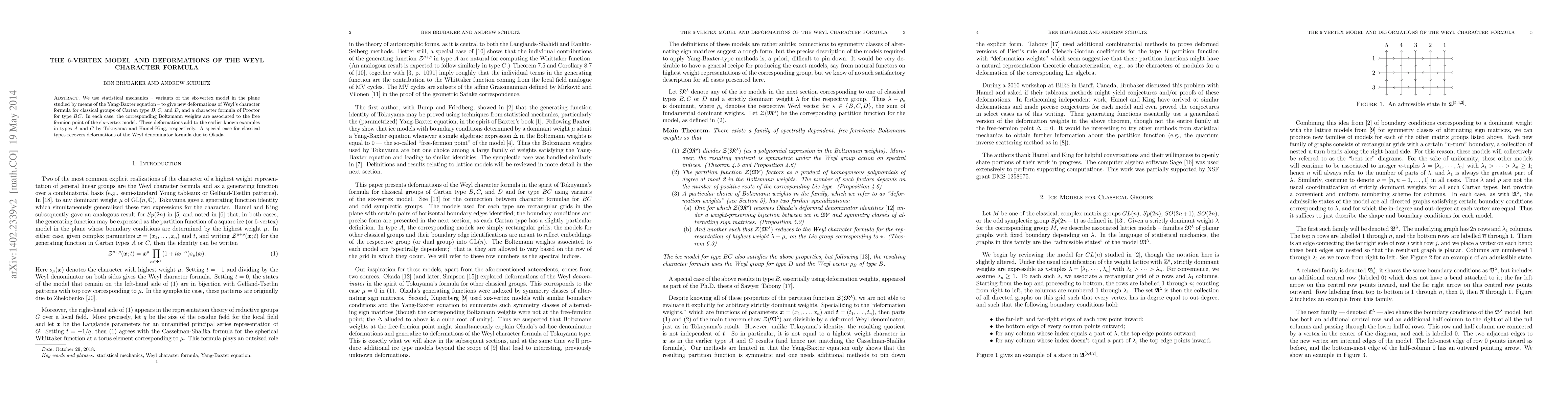 This paper applies statistical mechanics to deform Weyl character formulas for classical groups B, C, D, and BC, recovering known examples and new results in types A and C.