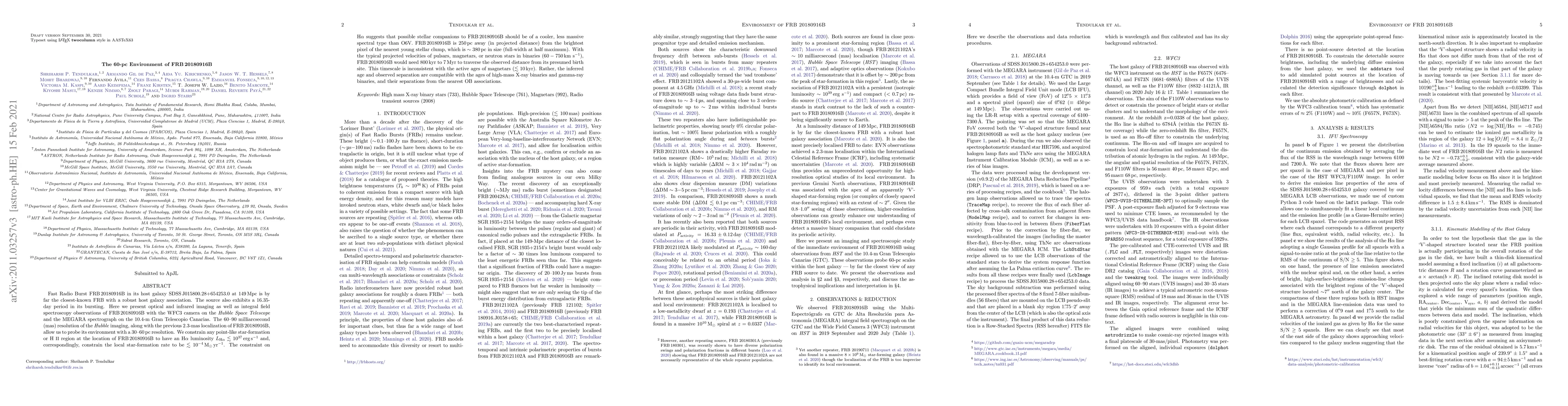The 60 pc Environment of FRB 20180916B investigates the host galaxy association and environment of a fast radio burst, constraining star formation rates and stellar companion characteristics, suggesting a birth site in a high-mass X-ray binary or gamma-ray binary.