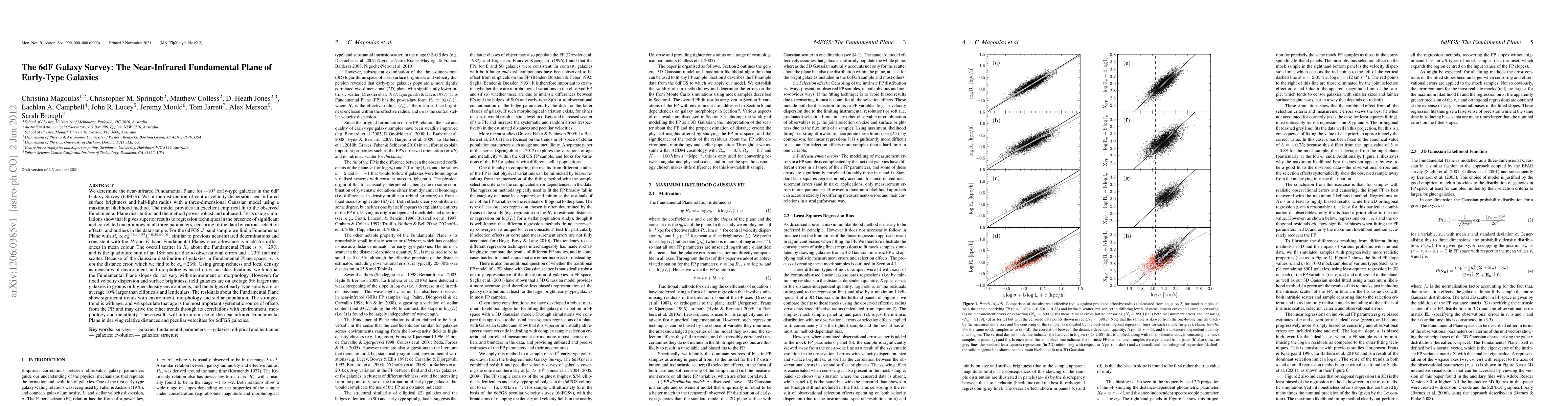 The 6dF Galaxy Survey reveals the near-infrared Fundamental Plane for ~10,000 early-type galaxies, showing a consistent relationship between central velocity dispersion, surface brightness, and half-light radius. The study finds that the plane's scatter is primarily due to observational and intrinsic factors, with age being the most significant factor influencing deviations from the plane.