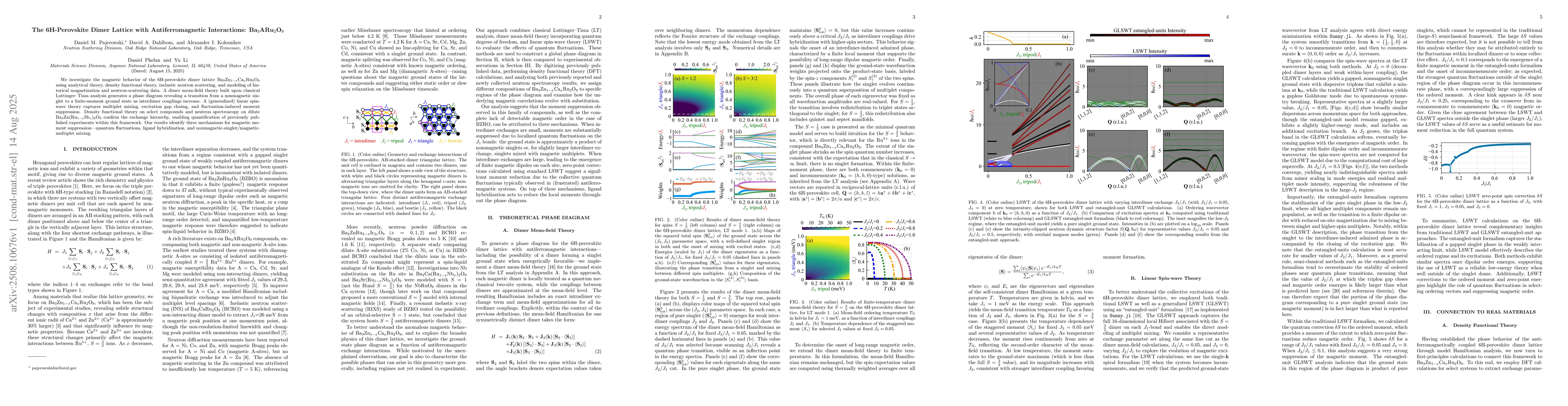 We investigate the magnetic behavior of the 6H-perovskite dimer lattice Ba$_3$Zn$_{1-x}$Ca$_x$Ru$_2$O$_9$ using analytical theory, density functional theory, inelastic neutron scattering, and modeling of historical magnetization and neutron-scattering data. A dimer mean-field theory built upon classical Luttinger-Tisza analysis generates a phase diagram revealing a transition from a nonmagnetic singlet to a finite-moment ground state as interdimer couplings increase. A (generalized) linear spin-wave theory captures multiplet mixing, excitation gap closing, and fluctuation-induced moment suppression. Density functional theory on select compounds and neutron spectroscopy on dilute Ba$_3$Zn(Ru$_{1-x}$Sb$_x$)$_2$O$_9$ confirm the exchange hierarchy, enabling quantification of previously published experiments within this framework. Our results identify three mechanisms for magnetic moment suppression: quantum fluctuations, ligand hybridization, and nonmagnetic-singlet/magnetic-multiplet mixing.