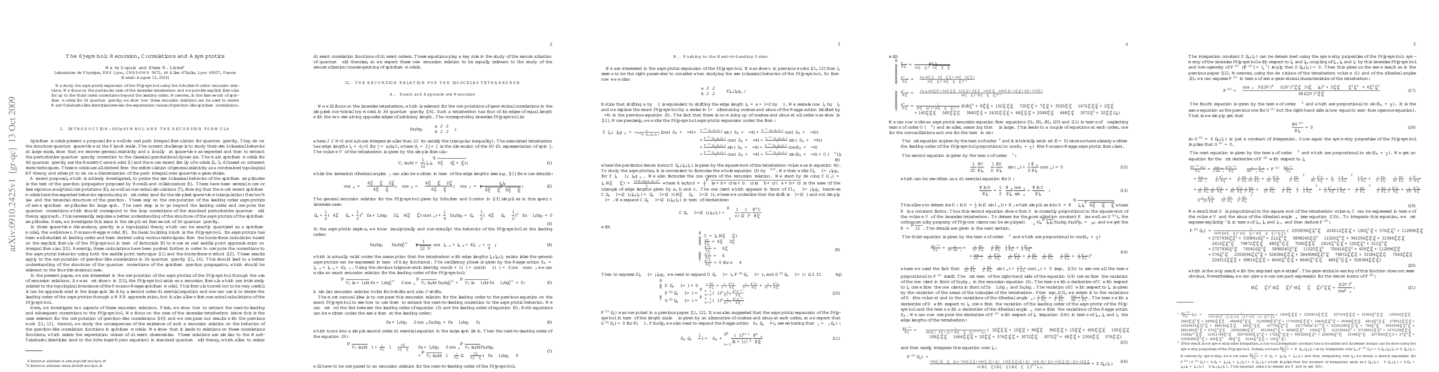 This research explores the asymptotic expansion of 6j-symbols via Schulten-Gordon recursion, specifically for the isosceles tetrahedron, providing explicit third-order corrections. It also demonstrates the application of these relations in deriving Ward-Takahashi-like identities in spinfoam models for 3d quantum gravity.