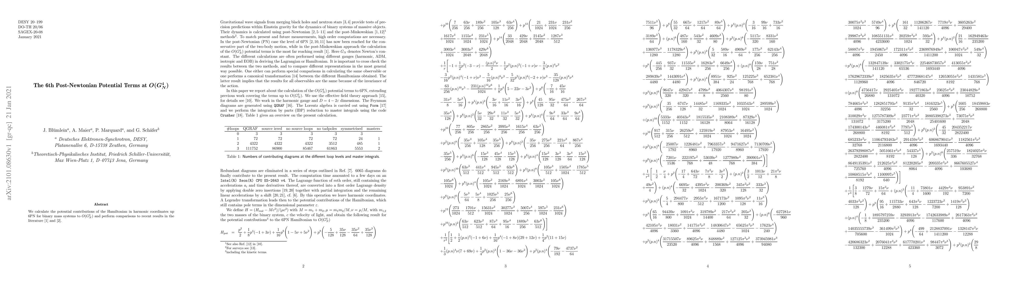 We calculate the potential contributions of the Hamiltonian in harmonic coordinates up 6PN for binary mass systems to $O(G_N^4)$ and perform comparisons to recent results in the literature \cite{Bern:2021dqo} and \cite{Bini:2020nsb}.
