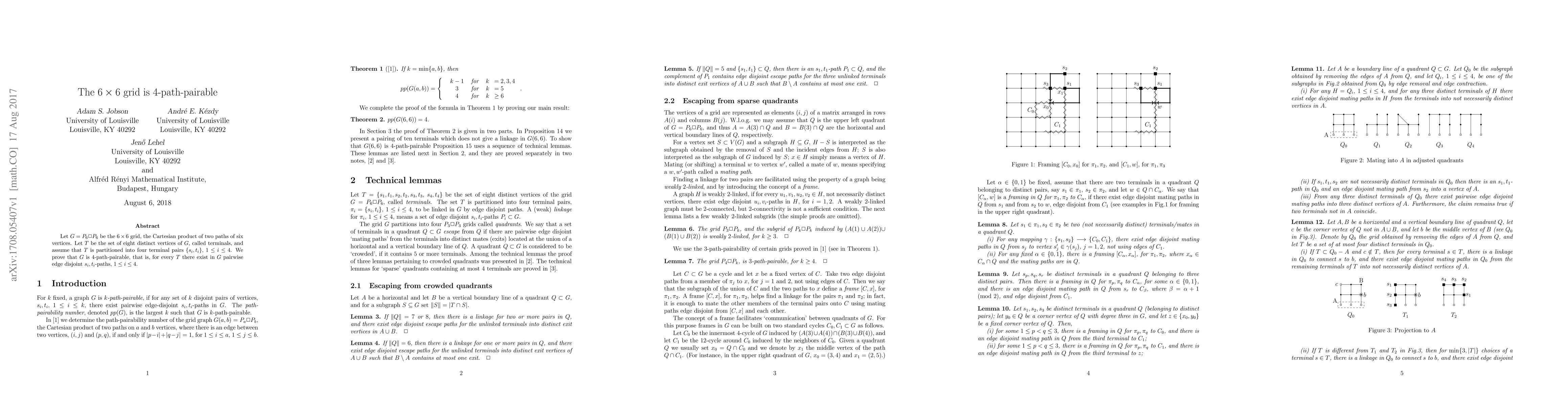 The $6 imes 6$ grid is a type of graph that can have 4 paths connecting each pair of terminals, proving it is $4$-path-pairable.
