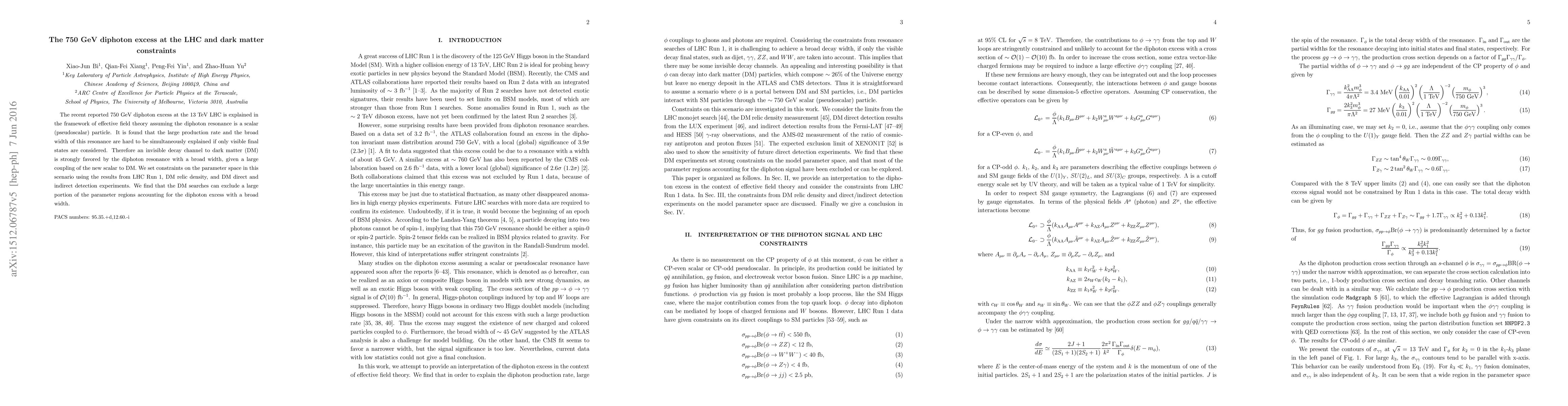 The paper explains the 750 GeV diphoton excess at the LHC as a scalar or pseudoscalar particle, suggesting an invisible decay channel to dark matter. It sets constraints on the parameter space using LHC data, dark matter relic density, and direct/indirect detection experiments, finding that dark matter searches exclude many regions that could account for the diphoton excess.