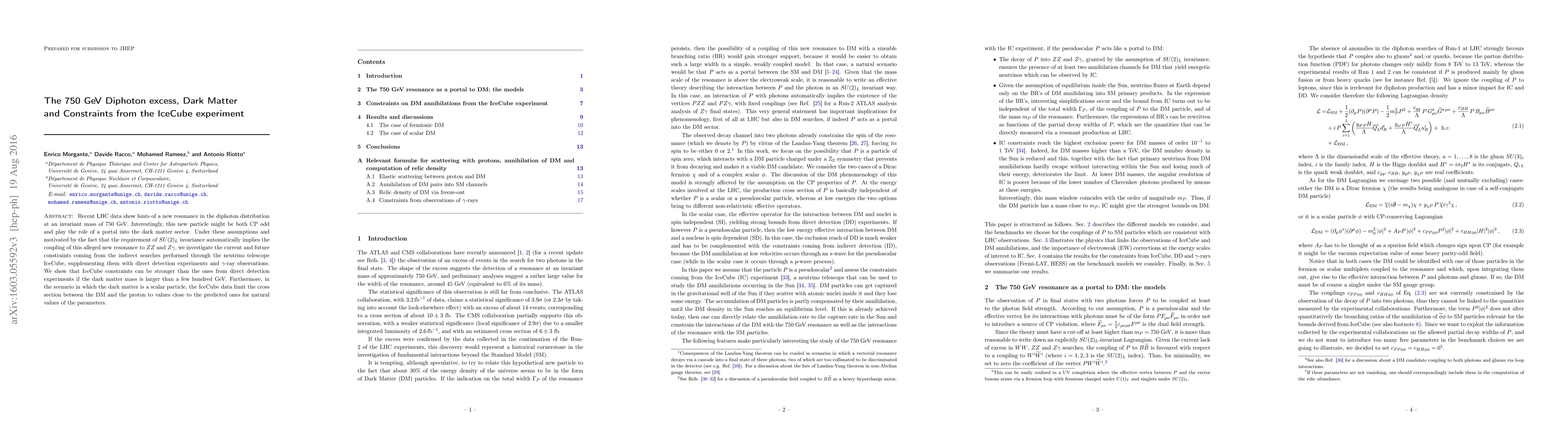 **Summary:** This research explores the potential link between a 750 GeV diphoton resonance detected at the LHC and dark matter, proposing it as a CP odd particle. It investigates how constraints from the IceCube neutrino telescope can be more stringent than those from direct dark matter detection, especially when dark matter mass exceeds several hundred GeV, particularly for scalar dark matter scenarios.