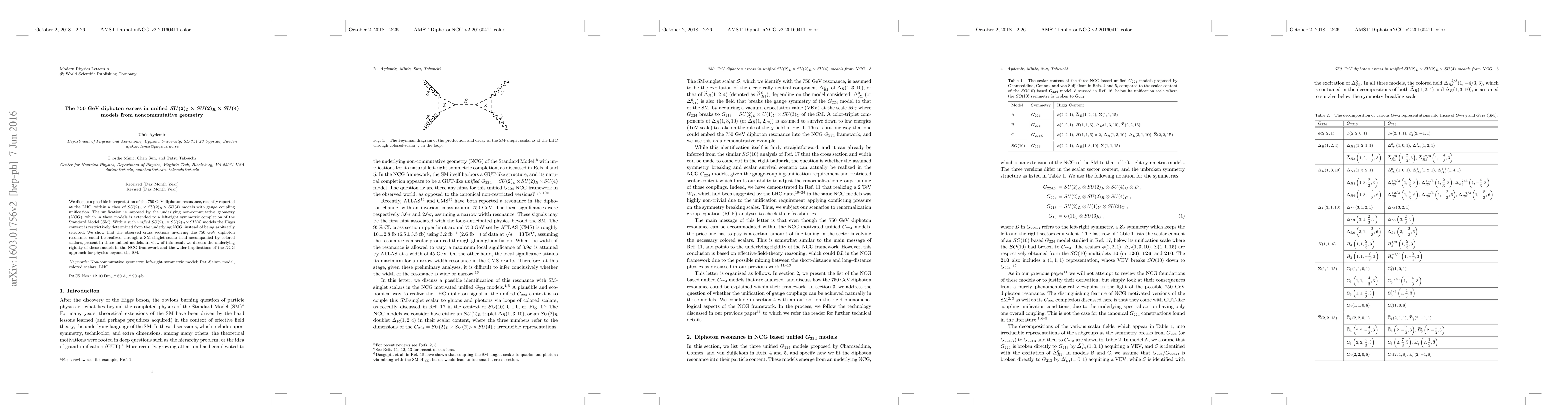 This paper interprets the 750 GeV diphoton excess observed at the LHC within unified $SU(2)_L\times SU(2)_R\times SU(4)$ models, where gauge coupling unification is driven by noncommutative geometry. The models predict specific Higgs content and can accommodate the resonance via a singlet scalar field and colored scalars.