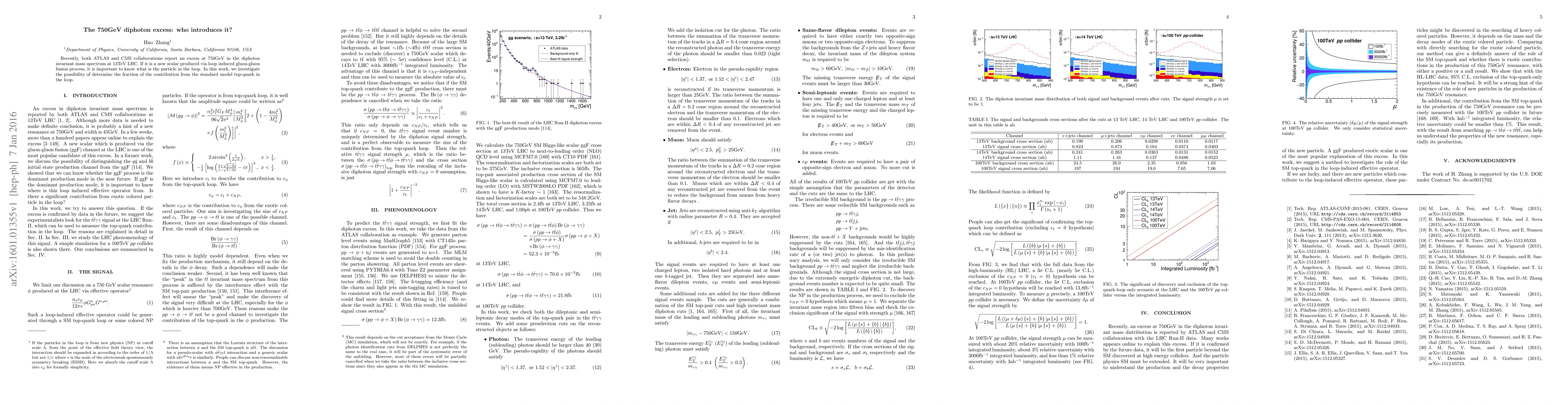 Recently, both ATLAS and CMS collaborations report an excess at 750GeV in the diphoton invariant mass spectrum at 13TeV LHC. If it is a new scalar produced via loop induced gluon-gluon fusion process, it is important to know what is the particle in the loop. In this work, we investigate the possibility of determine the fraction of the contribution from the standard model top-quark in the loop.