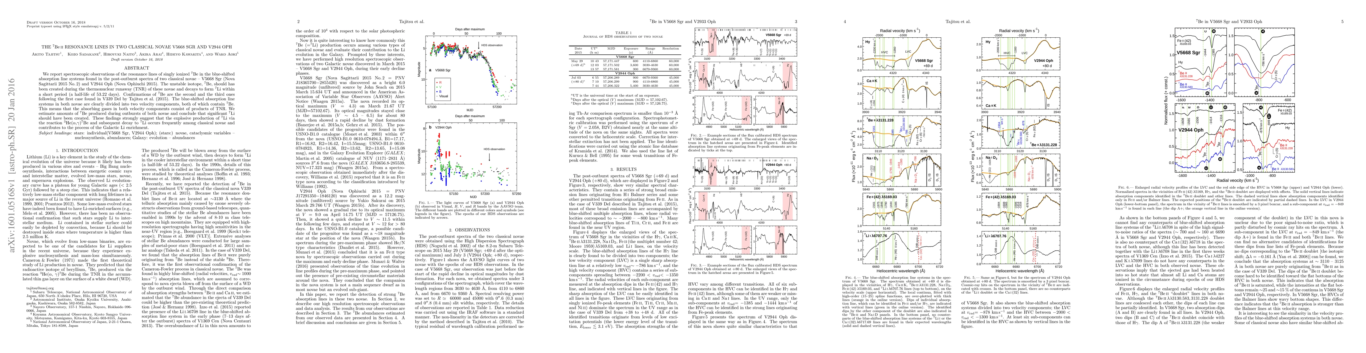 We report spectroscopic observations of the resonance lines of singly ionized $^{7}$Be in the blue-shifted absorption line systems found in the post-outburst spectra of two classical novae -- V5668 Sgr (Nova Sagittarii 2015 No.2) and V2944 Oph (Nova Ophiuchi 2015). The unstable isotope, $^{7}$Be, should has been created during the thermonuclear runaway (TNR) of these novae and decays to form $^{7}$Li within a short period (a half-life of 53.22 days). Confirmations of $^{7}$Be are the second and the third ones following the first case found in V339 Del by Tajitsu et al. (2015). The blue-shifted absorption line systems in both novae are clearly divided into two velocity components, both of which contain $^{7}$Be. This means that the absorbing gases in both velocity components consist of products of TNR. We estimate amounts of $^{7}$Be produced during outbursts of both novae and conclude that significant $^{7}$Li should have been created. These findings strongly suggest that the explosive production of $^{7}$Li via the reaction $^{3}$He($\alpha$,$\gamma$)$^{7}$Be and subsequent decay to $^{7}$Li occurs frequently among classical novae and contributes to the process of the Galactic Li enrichment.