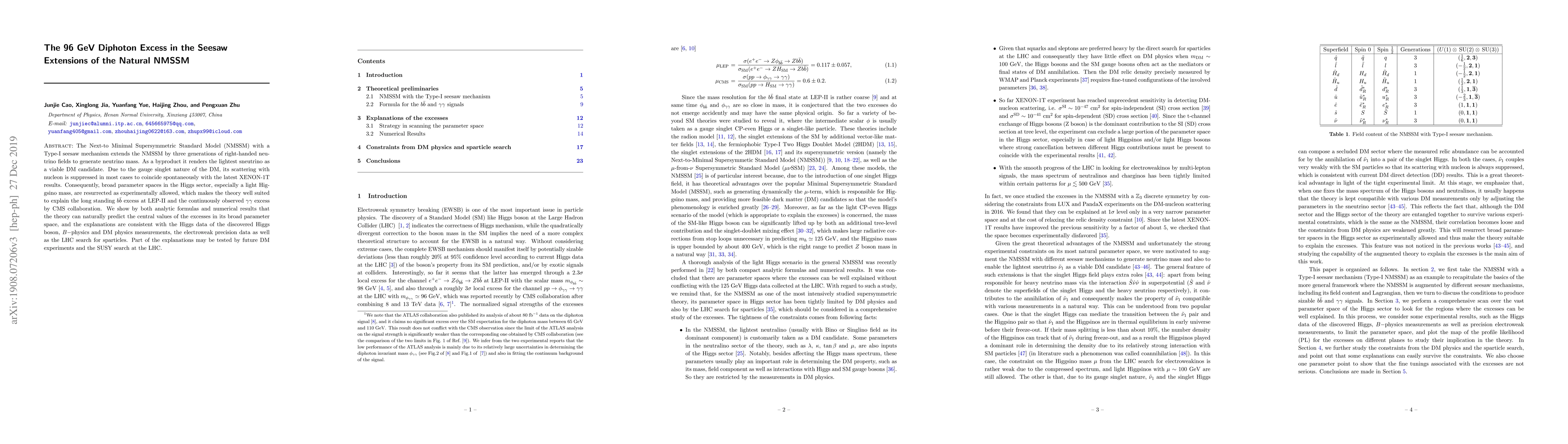 A new theory explains the 96 GeV diphoton excess with supersymmetric particles as viable DM candidates, potentially resolving the LEP-II and CMS excesses.