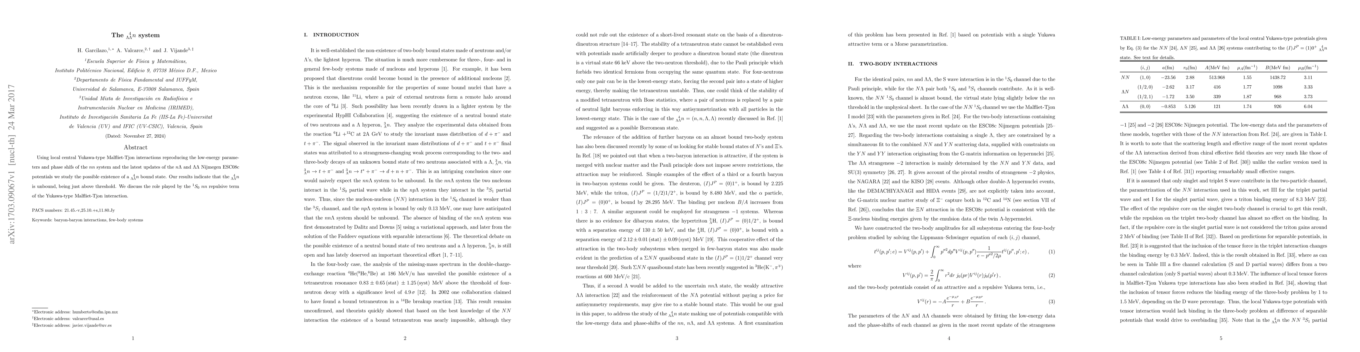 Using local central Yukawa-type Malfliet-Tjon interactions reproducing the low-energy parameters and phase shifs of the $nn$ system and the latest updates of the $n\Lambda$ and $\Lambda\Lambda$ Nijmegen ESC08c potentials we study the possible existence of a ${}_{\Lambda\Lambda}^{\,\,\,\,4}n$ bound state. Our results indicate that the ${}_{\Lambda\Lambda}^{\,\,\,\,4}n$ is unbound, being just above threshold. We discuss the role played by the $^1S_0$ $nn$ repulsive term of the Yukawa-type Malfliet-Tjon interaction.
