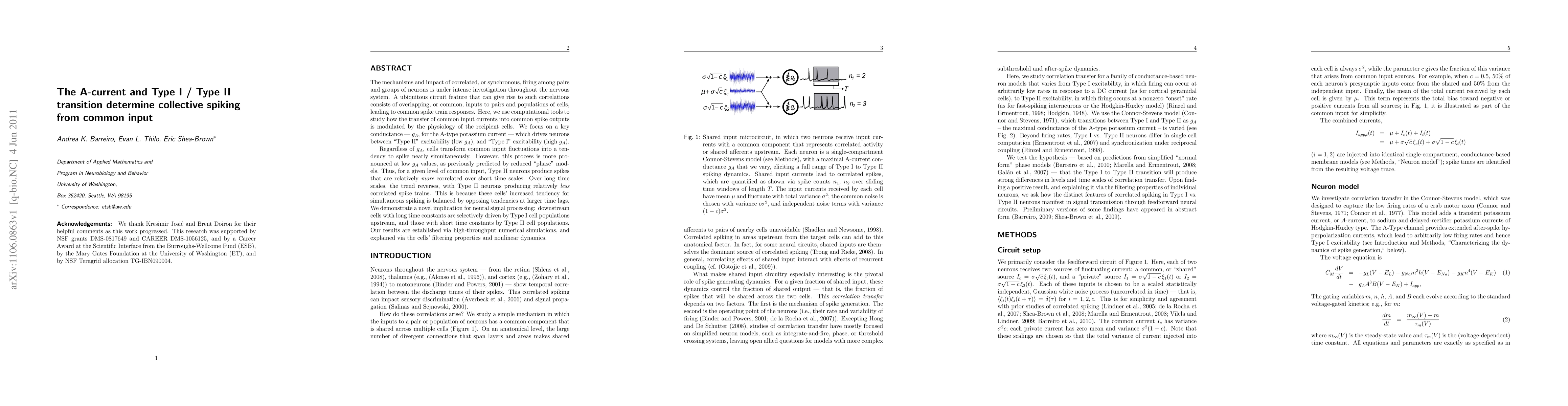The mechanisms and impact of correlated, or synchronous, firing among pairs and groups of neurons is under intense investigation throughout the nervous system. A ubiquitous circuit feature that can give rise to such correlations consists of overlapping, or common, inputs to pairs and populations of cells, leading to common spike train responses. Here, we use computational tools to study how the transfer of common input currents into common spike outputs is modulated by the physiology of the recipient cells. We focus on a key conductance - gA, for the A-type potassium current - which drives neurons between "Type II" excitability (low gA), and "Type I" excitability (high gA). Regardless of gA, cells transform common input fluctuations into a ten- dency to spike nearly simultaneously. However, this process is more pronounced at low gA values, as previously predicted by reduced "phase" models. Thus, for a given level of common input, Type II neurons produce spikes that are relatively more correlated over short time scales. Over long time scales, the trend reverses, with Type II neurons producing relatively less correlated spike trains. This is because these cells' increased tendency for simultaneous spiking is balanced by opposing tendencies at larger time lags. We demonstrate a novel implication for neural signal processing: downstream cells with long time constants are selectively driven by Type I cell populations upstream, and those with short time constants by Type II cell populations. Our results are established via high-throughput numerical simulations, and explained via the cells' filtering properties and nonlinear dynamics.