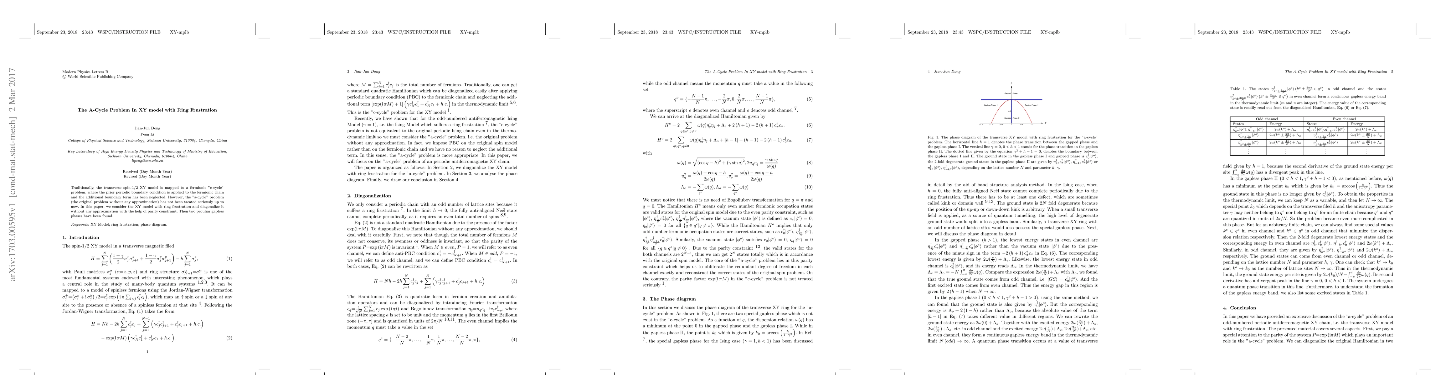 Researchers studied the XY model with ring frustration and found two peculiar gapless phases without approximation, using a parity constraint to diagonalize the system.