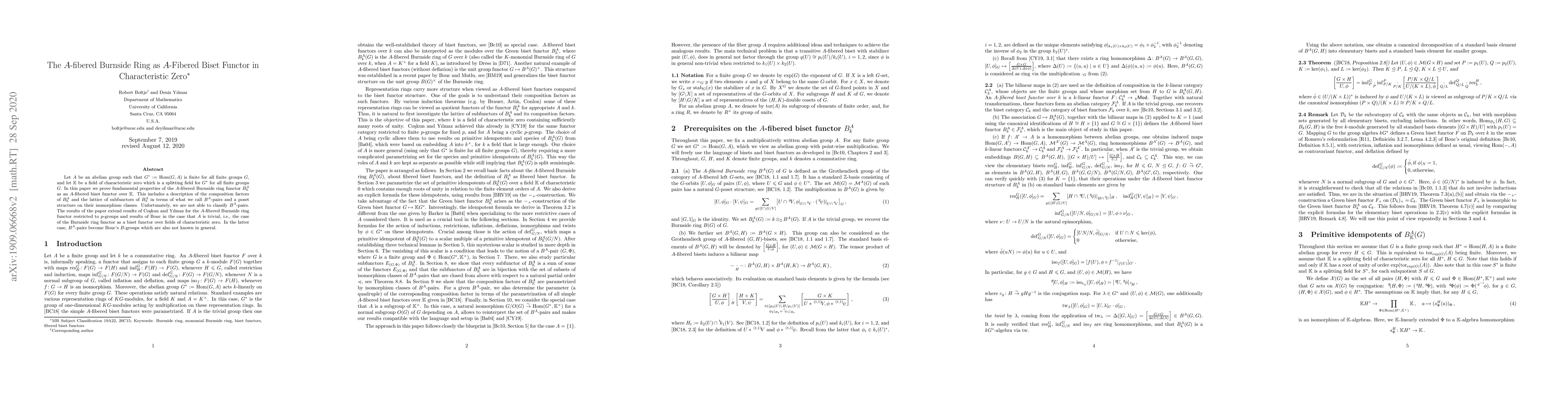 This paper establishes foundational properties of the $A$-fibered Burnside ring as an $A$-fibered biset functor over a field of characteristic zero, determining its subfunctors and composition factors, extending prior work on $p$-groups and the trivial case.