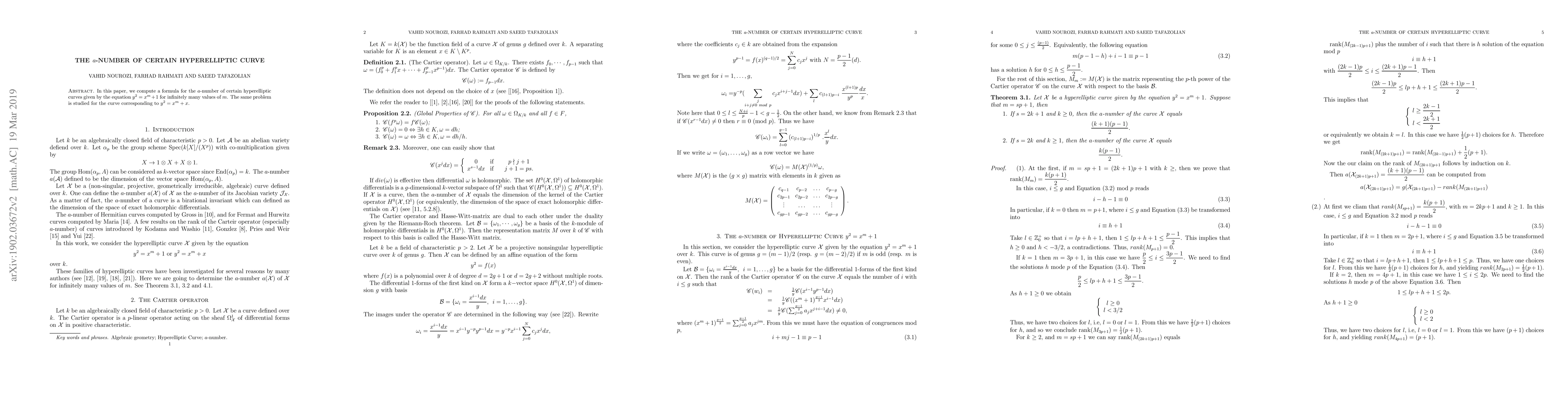 This paper presents a formula for the $a$-number of hyperelliptic curves defined by $y^2= x^m+1$ for infinite $m$ values, also examining $y^2= x^m+x$. The research focuses on computational methods and has implications for understanding these specific curve properties.