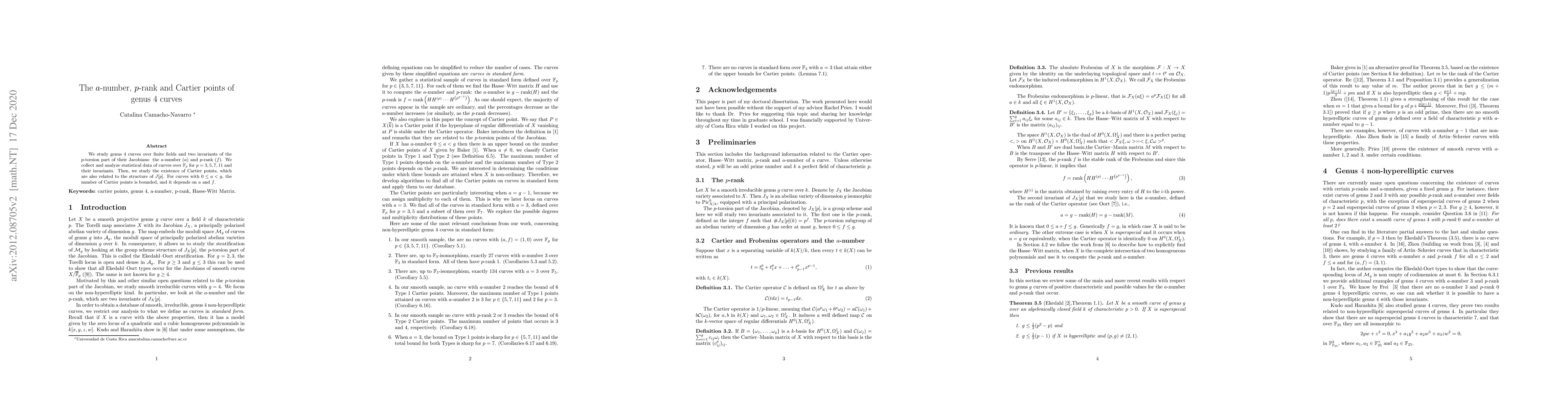 $p$-torsion part of their Jacobians: the $a$-number ($a$) and $p$-rank ($f$).