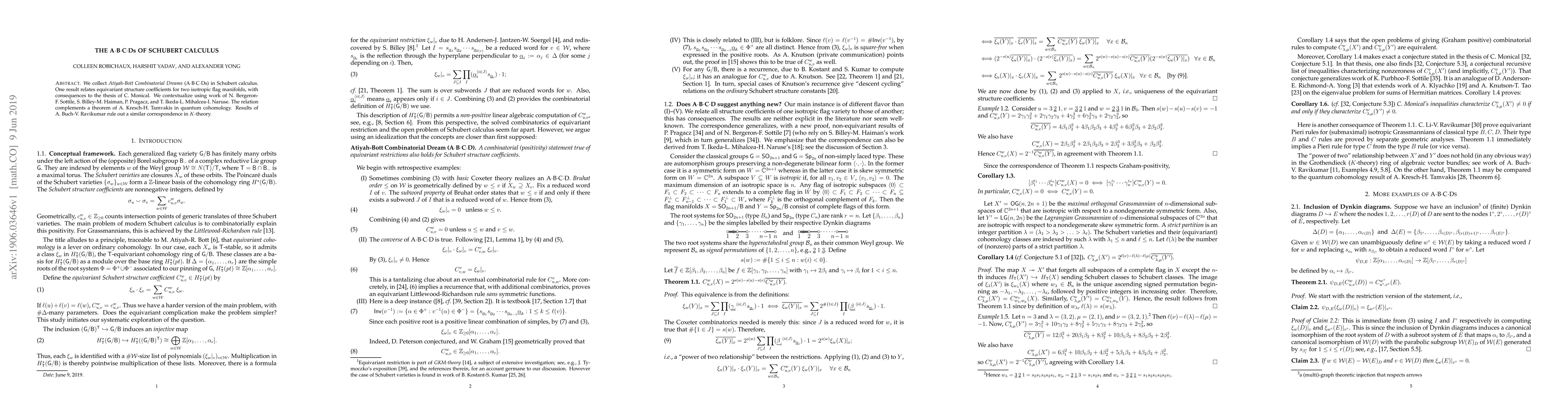 We collect Atiyah-Bott Combinatorial Dreams (A.B.C.Ds) in Schubert calculus. One result relates equivariant structure coefficients for two isotropic flag manifolds, with consequences to the thesis of C. Monical. We contextualize using work of N. Bergeron-F. Sottile, S. Billey-M. Haiman, P. Pragacz, and T. Ikeda-L. Mihalcea-I. Naruse. The relation complements a theorem of A. Kresch-H. Tamvakis in quantum cohomology. Results of A. Buch-V. Ravikumar rule out a similar correspondence in K-theory.