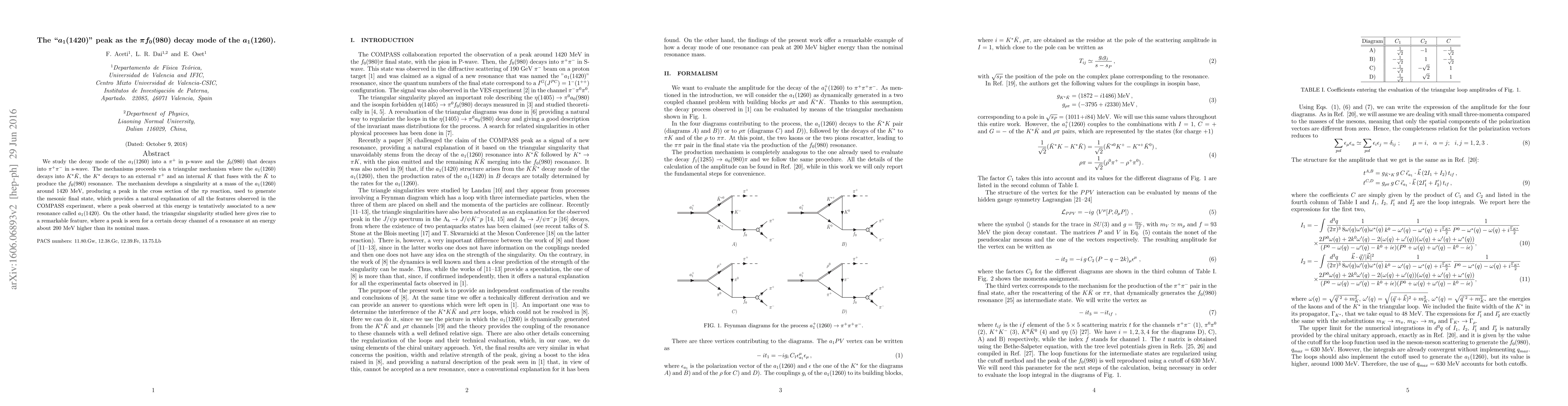 This paper investigates the decay of the $a_1(1260)$ meson into a $\pi^+$ and $f_0(980)$ meson, explaining the observed $a_1(1420)$ peak via a triangular singularity mechanism. The study finds a peak at 1420 MeV in the $\pi p$ reaction, consistent with the COMPASS experiment's observations.