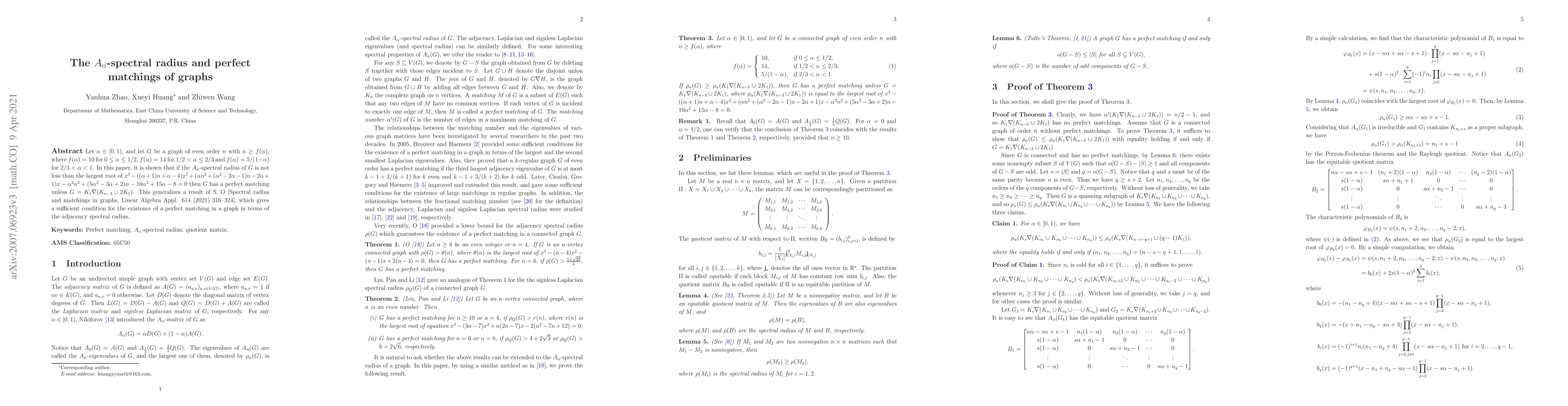 A graph of even order n with a high $A_eta$-spectral radius is guaranteed to have a perfect matching unless it has a specific forbidden subgraph structure.