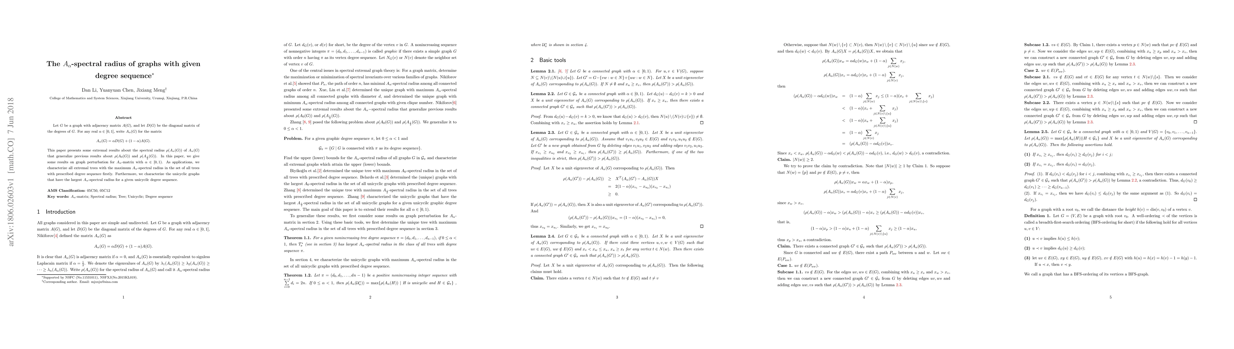 The paper presents extremal results on the $A_\alpha$-spectral radius of graphs with given degree sequences, generalizing previous results for specific values of $\alpha$. It uses graph perturbation theory for $A_\alpha$-matrices with $\alpha \in [0,1)$, characterizing extremal trees and unicyclic graphs with maximum $A_\alpha$-spectral radius for given degree sequences.