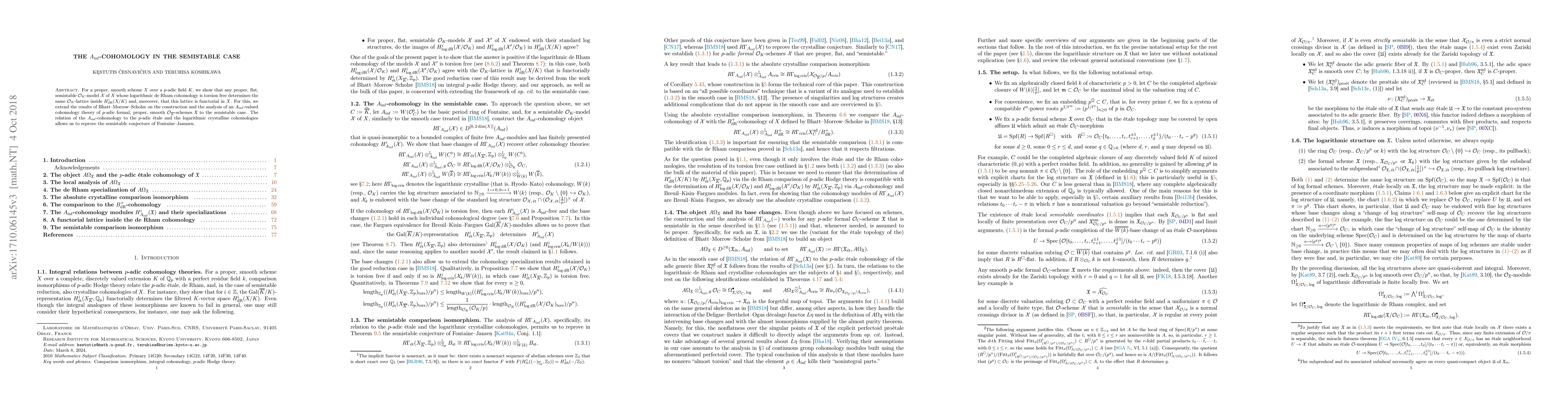 A paper establishes a connection between $A_{inf}$-cohomology in semistable cases and determins a unique $ extcal{O}_K$-lattice inside the logarithmic de Rham cohomology of a proper scheme.