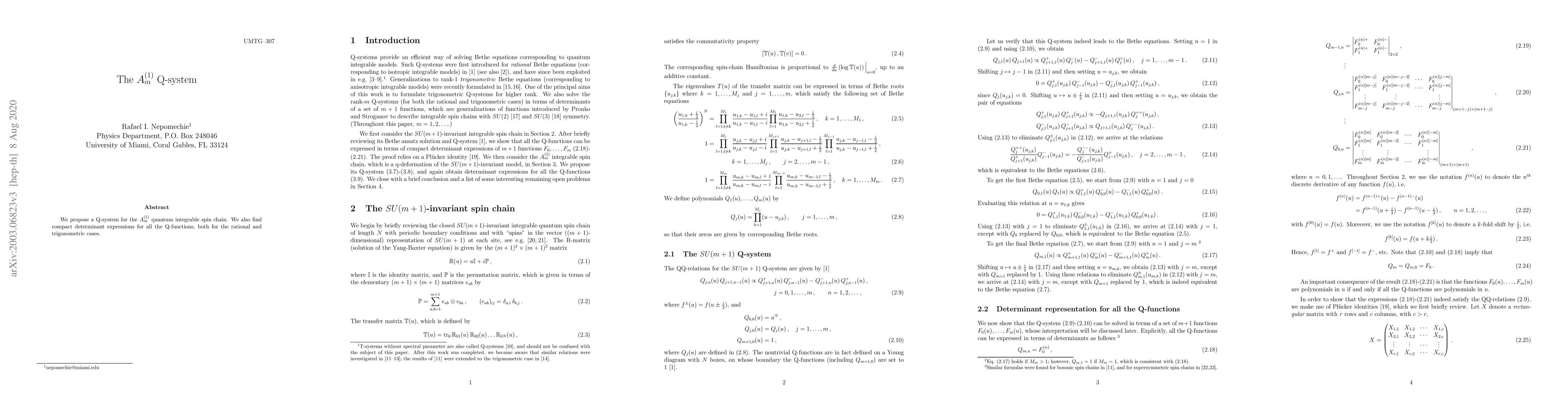 The paper introduces a novel Q-system for the $A_m^{(1)}$ quantum integrable spin chain and provides compact determinant expressions for Q-functions, linking it to previous works on integrable systems.