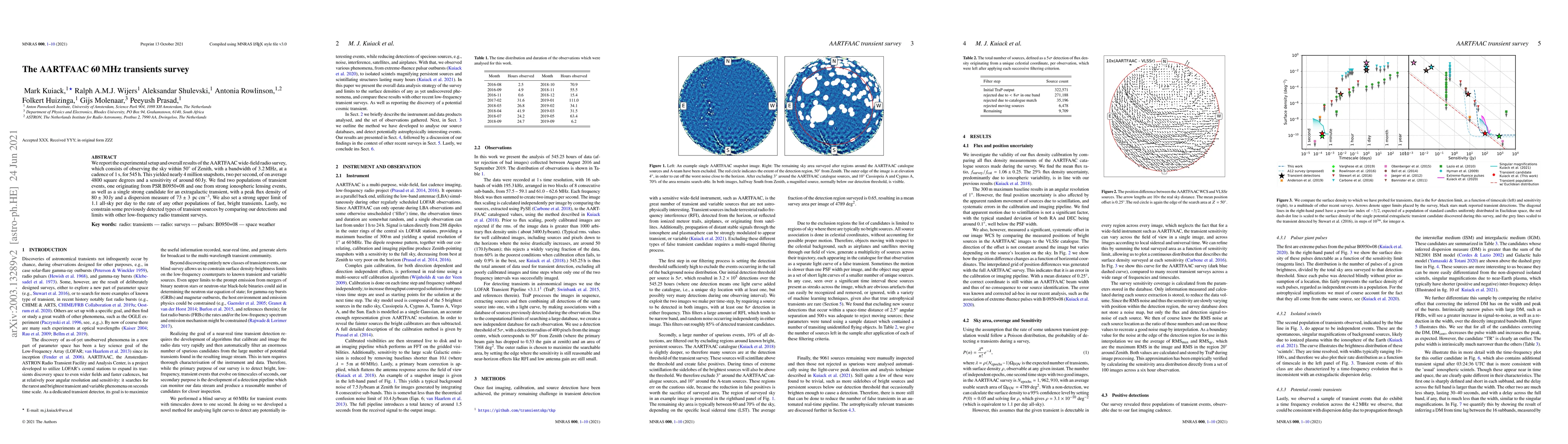 The AARTFAAC 60 MHz transients survey reports on a wide-field radio observation yielding nearly 4 million snapshots of 4800 square degrees, identifying two populations of transient events and a strong candidate extragalactic transient, while setting a stringent upper limit on the rate of other fast, bright transients. The study also constrains previously detected transient sources by comparing with other low-frequency radio surveys.