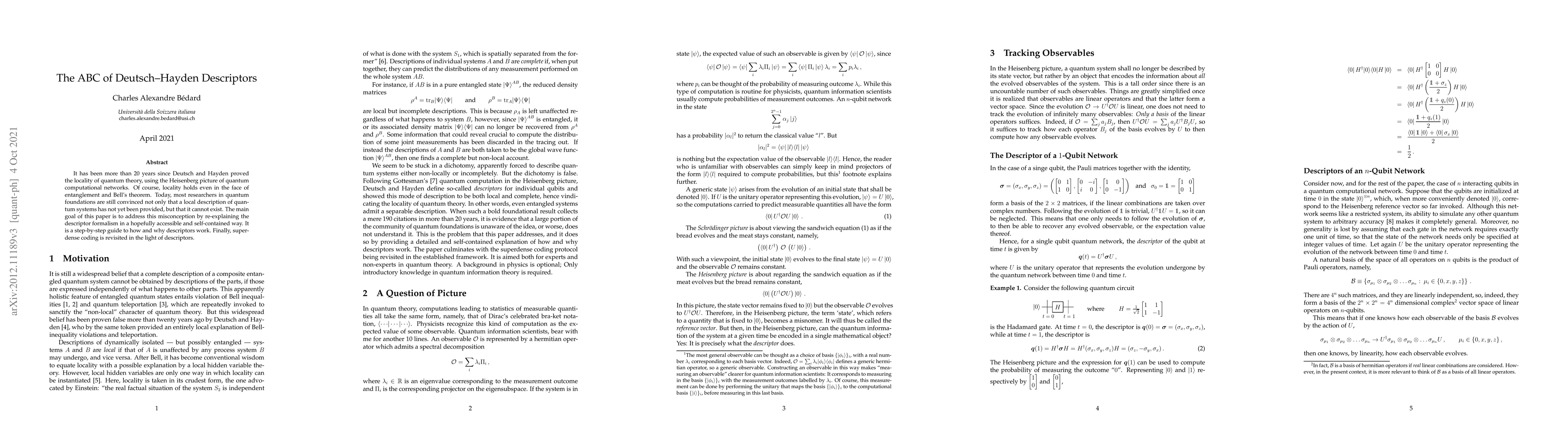 It has been more than 20 years since Deutsch and Hayden proved the locality of quantum theory, using the Heisenberg picture of quantum computational networks. Of course, locality holds even in the face of entanglement and Bell's theorem. Today, most researchers in quantum foundations are still convinced not only that a local description of quantum systems has not yet been provided, but that it cannot exist. The main goal of this paper is to address this misconception by re-explaining the descriptor formalism in a hopefully accessible and self-contained way. It is a step-by-step guide to how and why descriptors work. Finally, superdense coding is revisited in the light of descriptors.