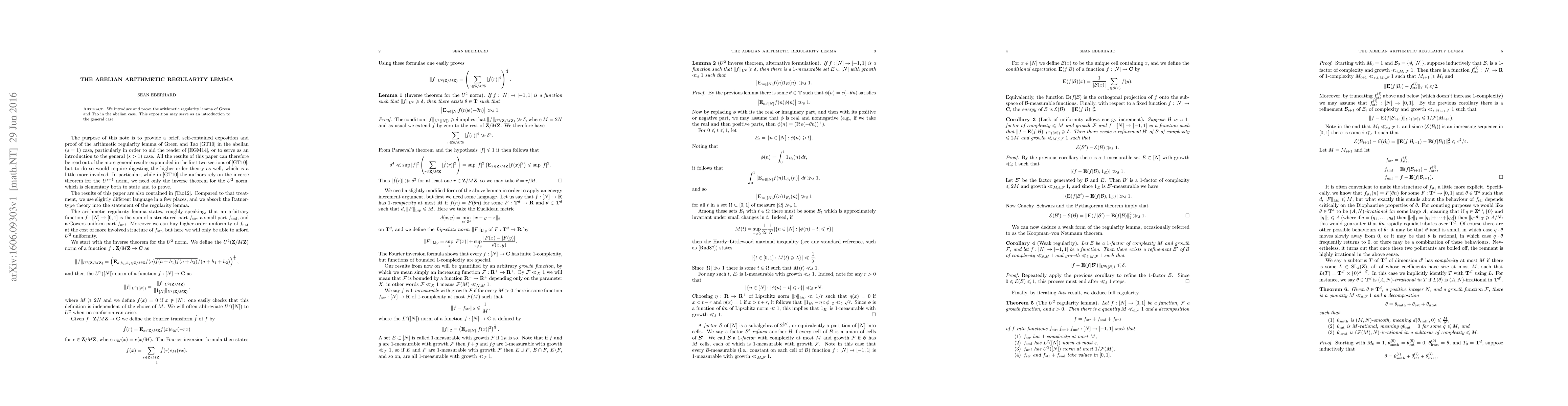 The paper provides a proof and exposition of the arithmetic regularity lemma of Green and Tao in the abelian ($U^2$) case over $\{1,\dots,N\}$.
