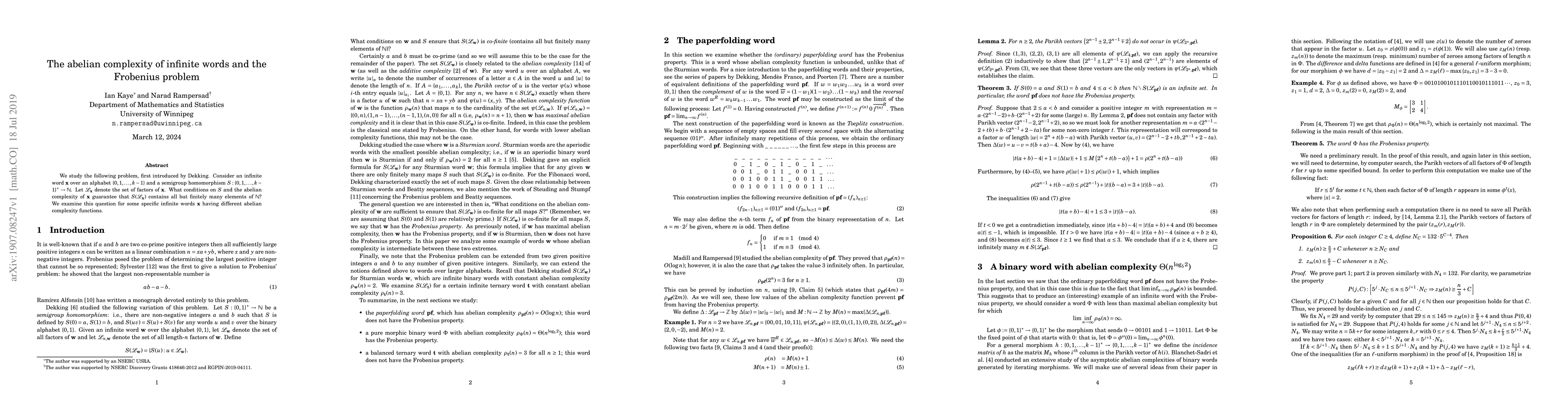 The paper investigates the conditions under which a semigroup homomorphism S applied to the set of factors L_x of an infinite word x over an alphabet {0,1,...,k-1} results in a set S(L_x) that contains all but finitely many elements of N, focusing on specific infinite words with varying abelian complexities.