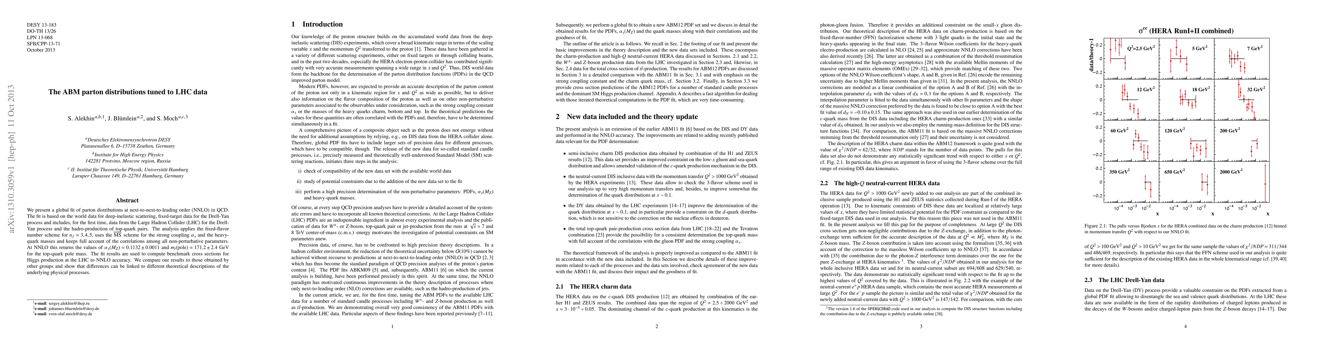 We present a global fit of parton distributions at next-to-next-to-leading order (NNLO) in QCD. The fit is based on the world data for deep-inelastic scattering, fixed-target data for the Drell-Yan process and includes, for the first time, data from the Large Hadron Collider (LHC) for the Drell-Yan process and the hadro-production of top-quark pairs. The analysis applies the fixed-flavor number scheme for n_f=3,4,5, uses the MS-bar scheme for the strong coupling \alpha_s and the heavy-quark masses and keeps full account of the correlations among all non-perturbative parameters. At NNLO this returns the values of \alpha_s(M_Z) = 0.1132 +- 0.0011 and m_t(pole) = 171.2 +- 2.4 GeV for the top-quark pole mass.The fit results are used to compute benchmark cross sections for Higgs production at the LHC to NNLO accuracy. We compare our results to those obtained by other groups and show that differences can be linked to different theoretical descriptions of the underlying physical processes.