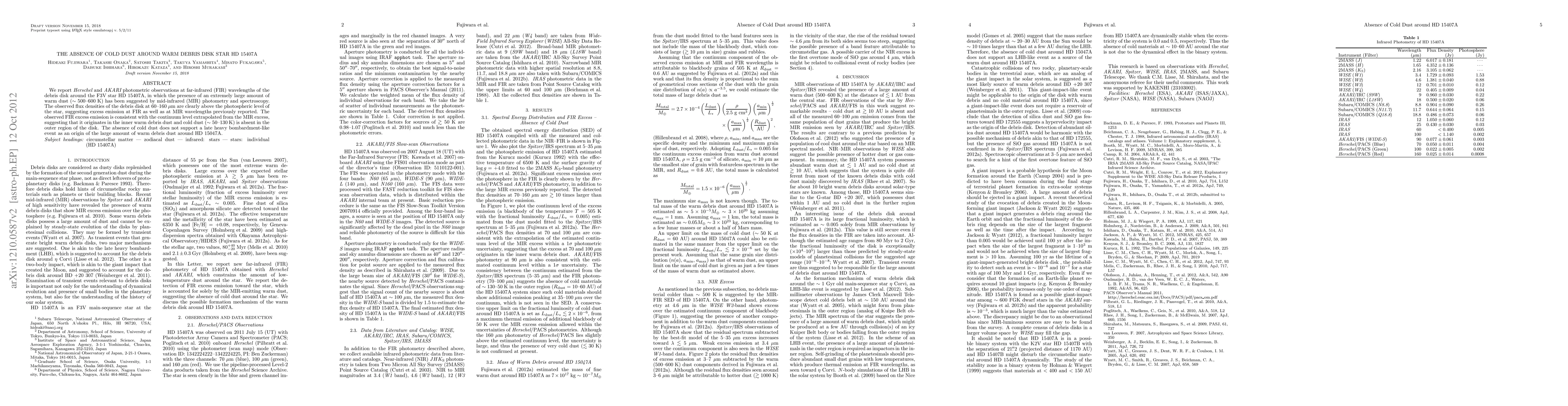 This study using Herschel and AKARI observations finds no cold dust in the debris disk around HD 15407A, despite the presence of warm dust. The absence of cold dust suggests that the warm debris is not due to a late heavy bombardment-like event.