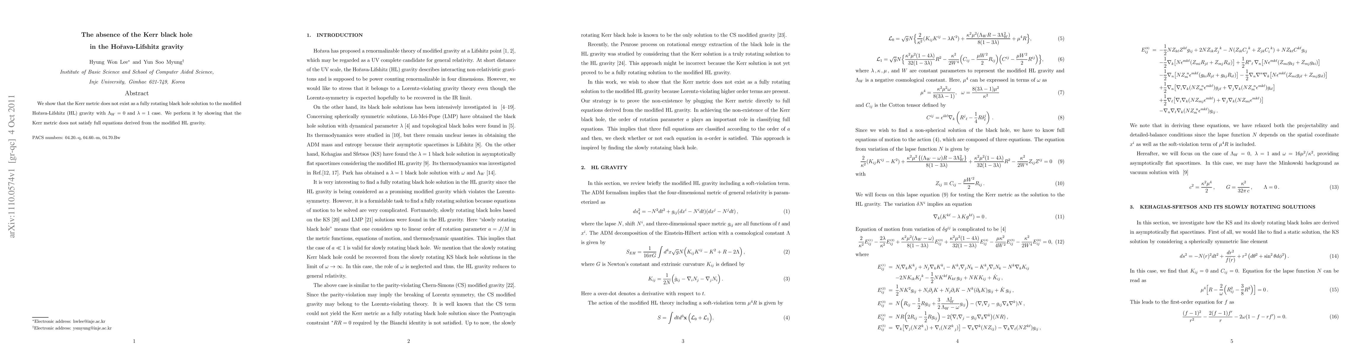 We show that the Kerr metric does not exist as a fully rotating black hole solution to the modified Ho\v{r}ava-Lifshitz (HL) gravity with $\Lambda_W=0$ and $\lambda=1$ case. We perform it by showing that the Kerr metric does not satisfy full equations derived from the modified HL gravity.