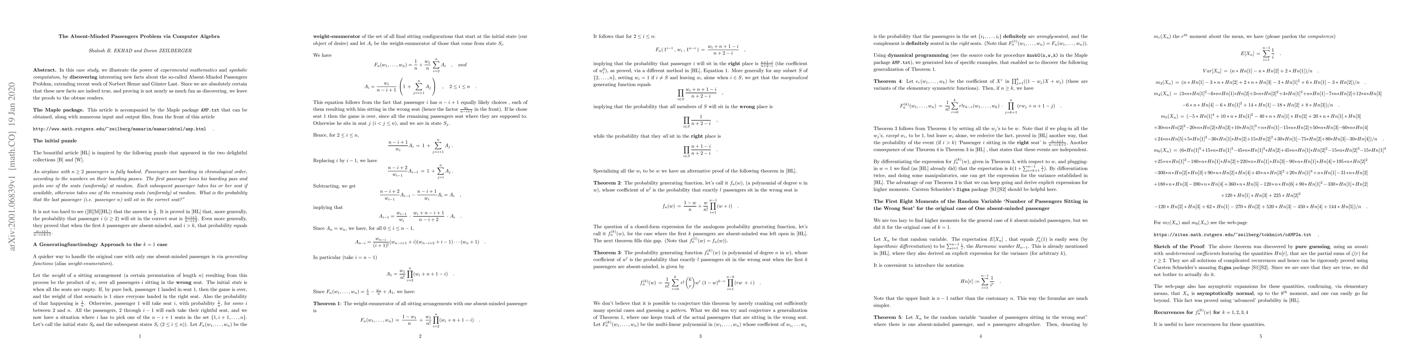 In a delightful article that recently appeared in the American Mathematics Monthly, Norbert Henze and Guenter Last discuss the "Absent-Minded Passengers" Problem, but left open finding an explicit expression for the probability generating function, of the random variable "Number of passengers occupying a wrong seat", when the number of absent-minded passengers is larger than one. This is accomplished in this note, using experimental mathematics and symbolic computation. We also derive explicit expressions for the first 8 moments of the original case of one absent-minded passenger, and indicate how to extend it to the general case