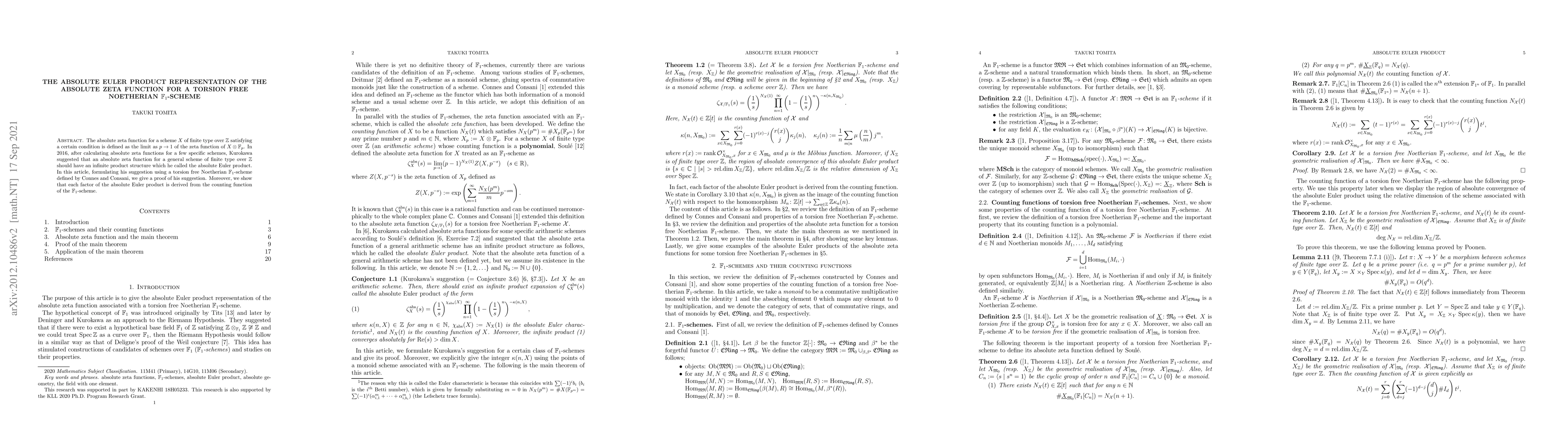 This paper proves Kurokawa's conjecture on the absolute Euler product representation for the absolute zeta function of a torsion-free Noetherian $\mathbb{F}_1$-scheme, demonstrating that each factor in the product is derived from the scheme's counting function.