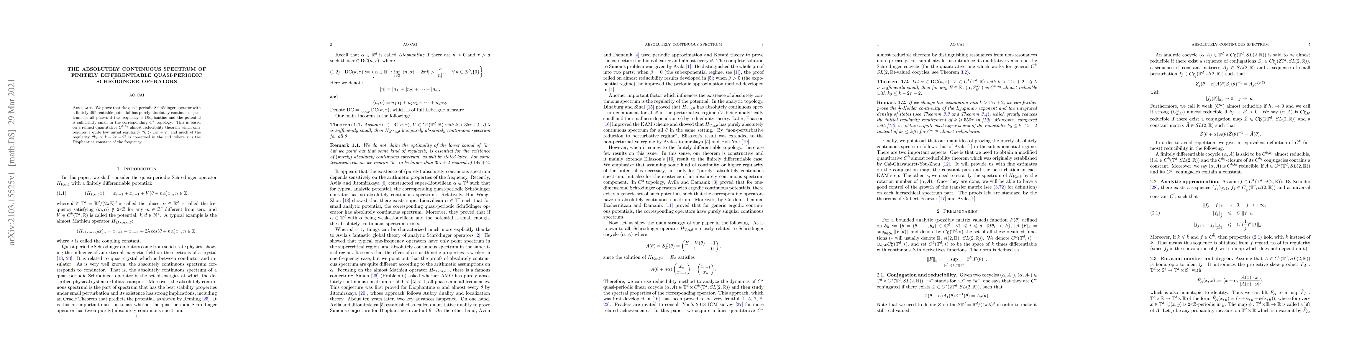 A new paper proves that a specific type of mathematical equation has an absolutely continuous spectrum when certain conditions are met, providing insight into the behavior of particles in complex systems.