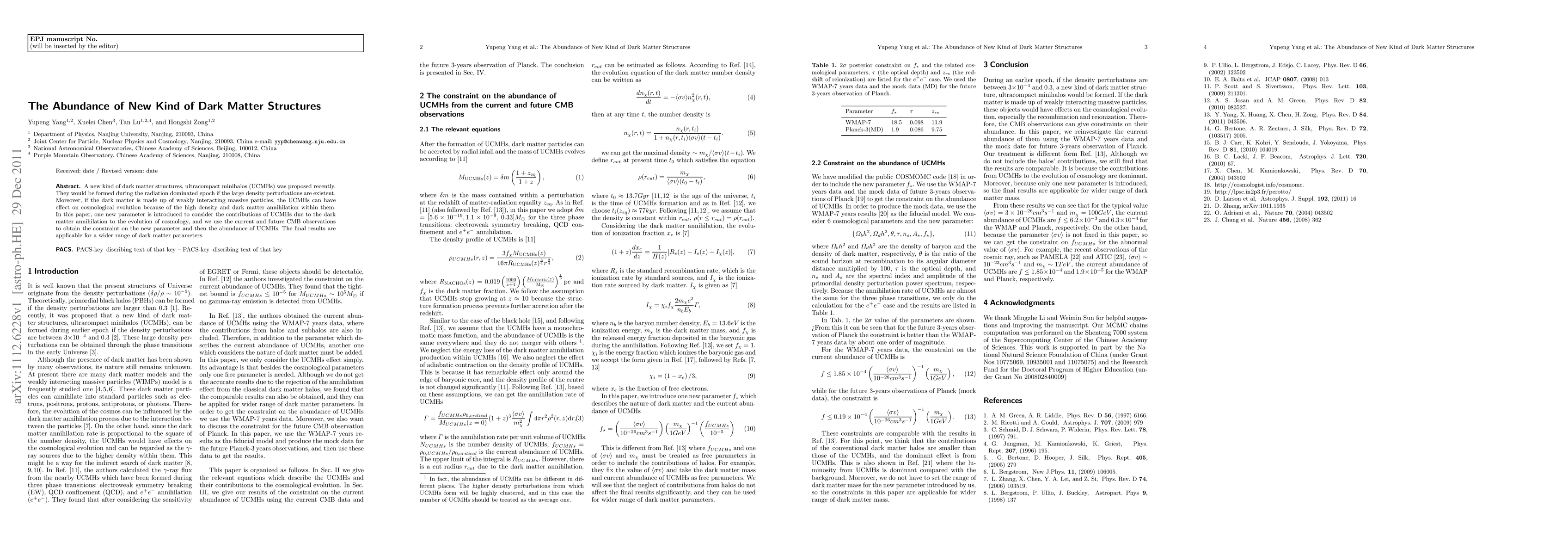 A new kind of dark matter structures, ultracompact minihalos (UCMHs) was proposed recently. They would be formed during the radiation dominated epoch if the large density perturbations are existent. Moreover, if the dark matter is made up of weakly interacting massive particles, the UCMHs can have effect on cosmological evolution because of the high density and dark matter annihilation within them. In this paper, one new parameter is introduced to consider the contributions of UCMHs due to the dark matter annihilation to the evolution of cosmology, and we use the current and future CMB observations to obtain the constraint on the new parameter and then the abundance of UCMHs. The final results are applicable for a wider range of dark matter parameters