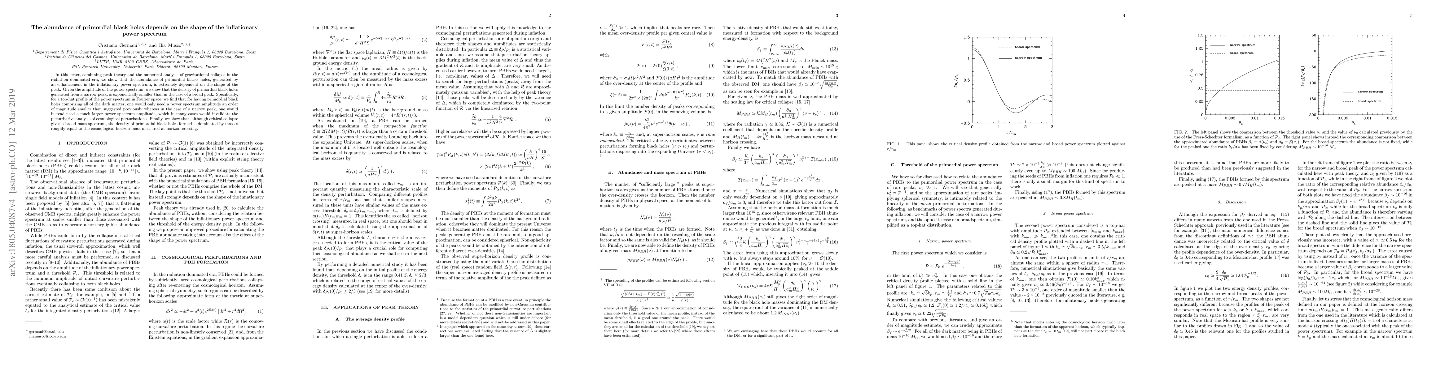 This paper demonstrates that the density of primordial black holes, formed during an inflationary epoch, is highly dependent on the shape of the inflationary power spectrum. It finds that a broad peak allows for a significantly lower power spectrum amplitude to generate primordial black holes, while a narrow peak requires a much larger amplitude, often invalidating perturbative analyses.