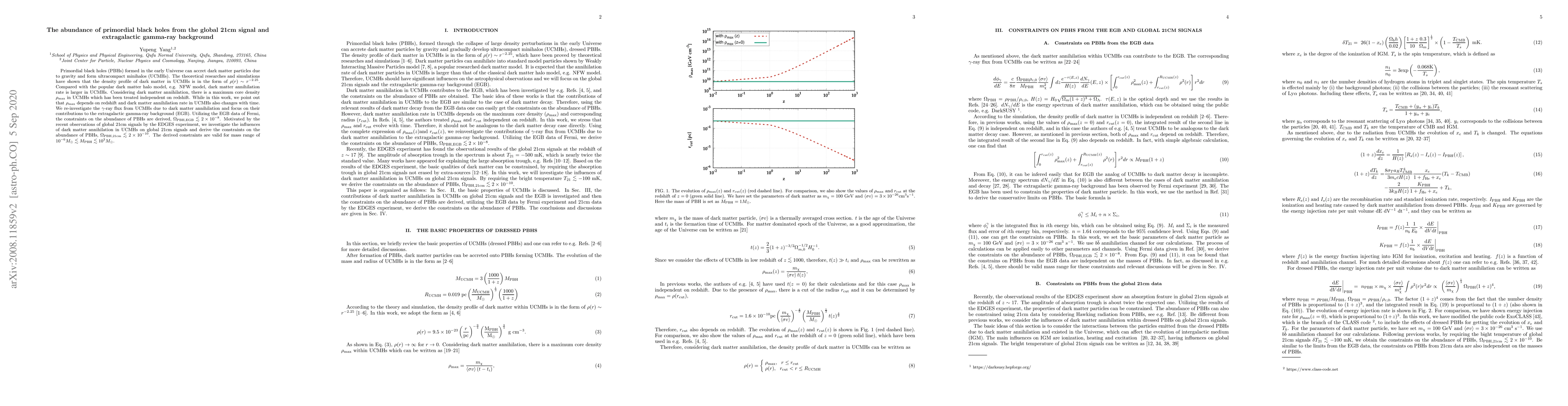 Research suggests that primordial black holes may contribute to the extragalactic gamma-ray background and global 21cm signals, with constraints indicating an abundance of less than 2x10^-8 PBHs.