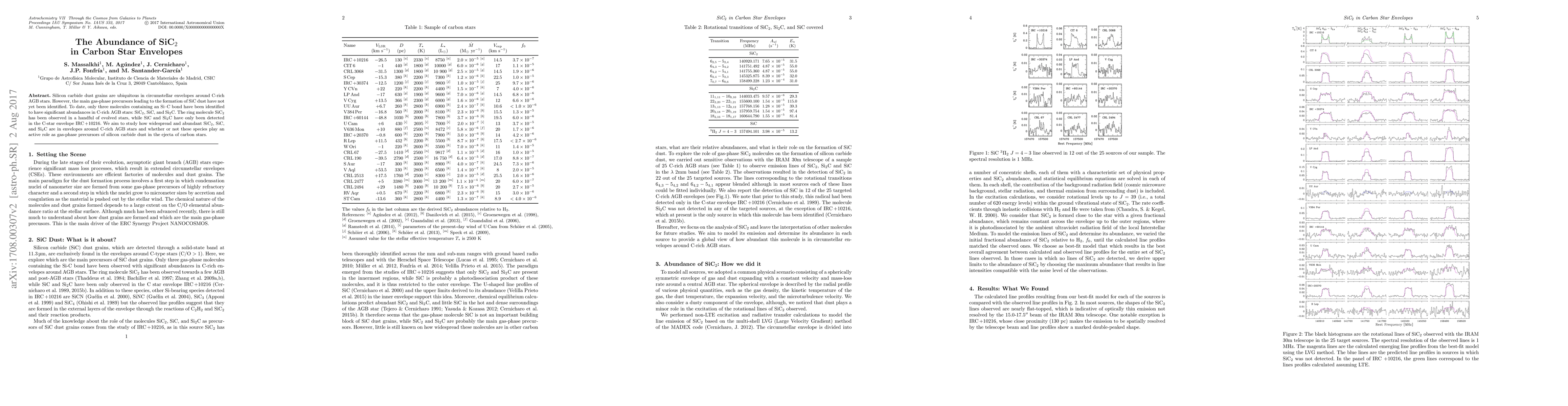 A recent study investigated silicon carbide dust grains in carbon star envelopes, finding that three molecules containing an Si--C bond (SiC$_2$, SiC, and Si$_2$C) are abundant and may play a key role as gas-phase precursors of silicon carbide dust.