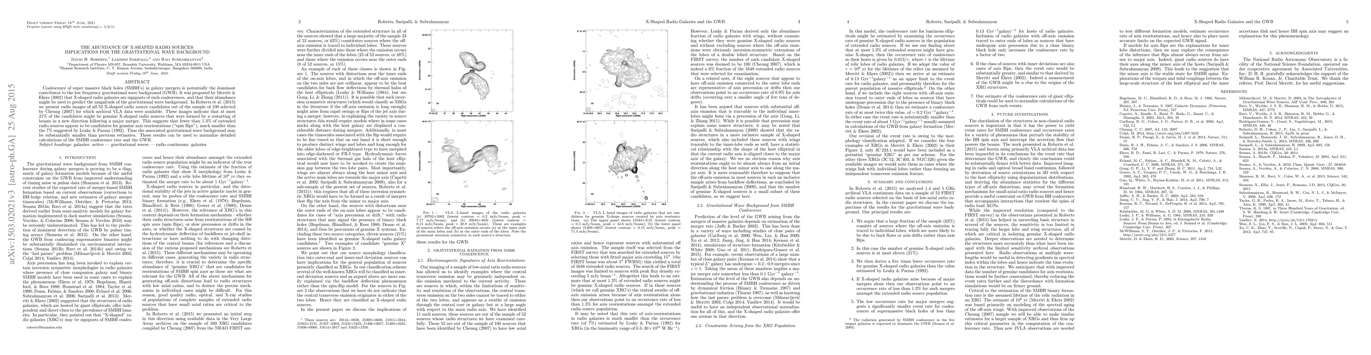 Coalescence of super massive black holes (SMBH's) in galaxy mergers is potentially the dominant contributor to the low frequency gravitational wave background (GWB). IIt was proposed by Merritt and Ekers (2002) that X-shaped radio galaxies are signposts of such coalescences, and that their abundance might be used to predict the magnitude of the gravitational wave background. In Roberts et al. (2015) we present radio images of all 52 X-shaped radio source candidates out of the sample of 100 selected by Cheung (2007) for which archival VLA data were available. These images indicate that at most 21% of the candidates might be genuine X-shaped radio sources that were formed by a restarting of beams in a new direction following a major merger. This suggests that fewer than 1.3% of extended radio sources appear to be candidates for genuine axis reorientations ("spin flips"), much smaller than the 7% suggested by Leahy and Parma (1992). Thus the associated gravitational wave background may be substantially smaller than previous estimates. These results can be used to normalize detailed calculations of the SMBH coalescence rate and the GWB.