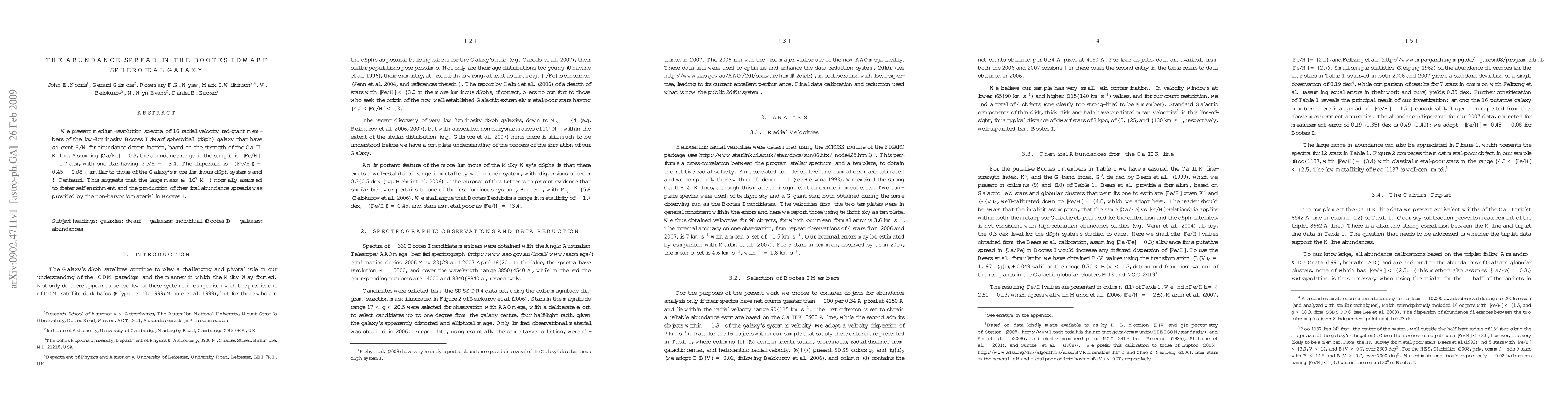 This study analyzes the chemical abundances of 16 red-giant stars in the Bootes I dwarf spheroidal galaxy, revealing a significant spread in iron abundances despite the galaxy's low luminosity. The findings suggest that non-baryonic material contributes to the galaxy's large mass, which typically supports self-enrichment and abundance diversity.