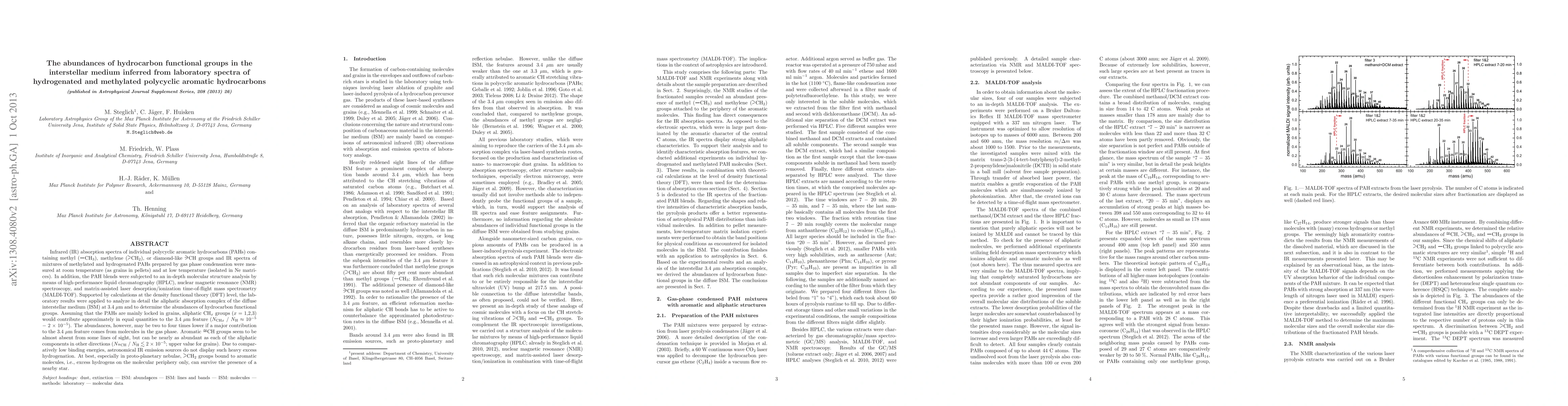 Infrared (IR) absorption spectra of individual polycyclic aromatic hydrocarbons (PAHs) containing methyl (-CH3), methylene (>CH2), or diamond-like *CH groups and IR spectra of mixtures of methylated and hydrogenated PAHs prepared by gas phase condensation were measured at room temperature (as grains in pellets) and at low temperature (isolated in Ne matrices). In addition, the PAH blends were subjected to an in-depth molecular structure analysis by means of high-performance liquid chromatography, nuclear magnetic resonance spectroscopy, and matrix-assisted laser desorption/ionization time-of-flight mass spectrometry. Supported by calculations at the density functional theory level, the laboratory results were applied to analyze in detail the aliphatic absorption complex of the diffuse interstellar medium at 3.4 mu-m and to determine the abundances of hydrocarbon functional groups. Assuming that the PAHs are mainly locked in grains, aliphatic CHx groups (x = 1,2,3) would contribute approximately in equal quantities to the 3.4 mu-m feature (N_{CHx} / N_{H} approx 10^{-5} - 2 * 10^{-5}). The abundances, however, may be two to four times lower if a major contribution to the 3.4 mu-m feature comes from molecules in the gas phase. Aromatic =CH groups seem to be almost absent from some lines of sight, but can be nearly as abundant as each of the aliphatic components in other directions (N_{=CH} / N_{H} < 2 * 10^{-5}; upper value for grains). Due to comparatively low binding energies, astronomical IR emission sources do not display such heavy excess hydrogenation. At best, especially in proto-planetary nebulae, >CH2 groups bound to aromatic molecules, i.e., excess hydrogens on the molecular periphery only, can survive the presence of a nearby star.