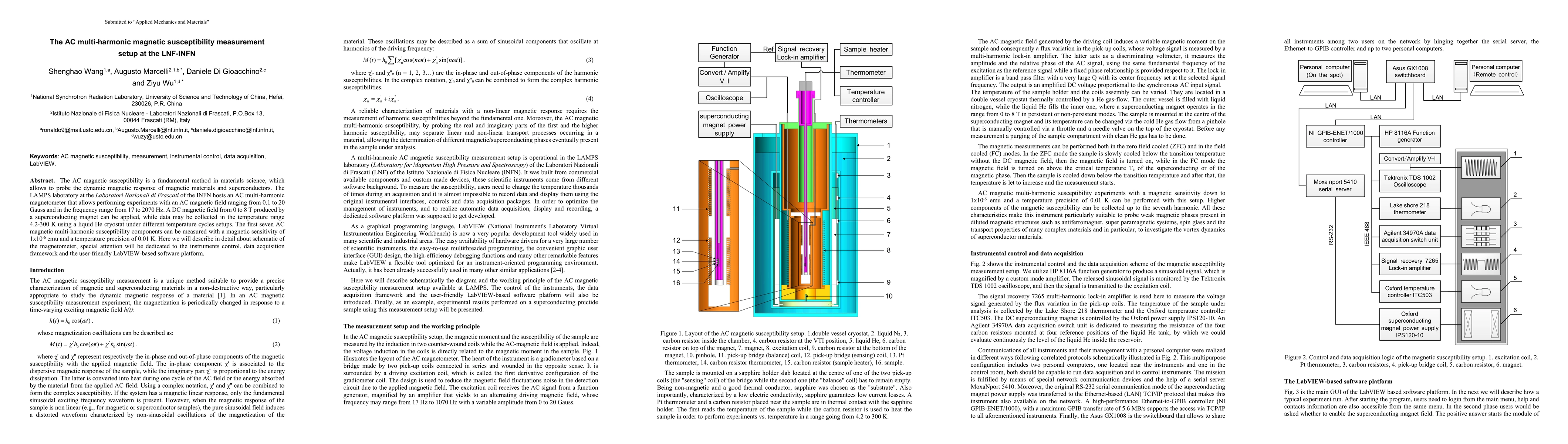This paper details the AC multi-harmonic magnetic susceptibility measurement setup at LNF-INFN's LAMPS laboratory, which allows dynamic probing of magnetic materials and superconductors with high sensitivity and precision over a broad temperature range. It describes the magnetometer's schematic, control instruments, data acquisition system, and a user-friendly LabVIEW-based software platform.