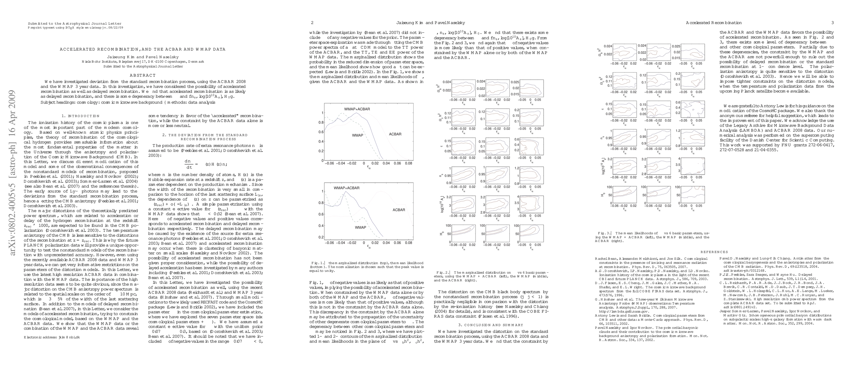 We have investigated the deviation from the standard recombination process, using the ACBAR 2008 and the WMAP 3 year data. In this investigation, we have considered the possibility of the accelerated recombination as well as the delayed recombination. We find that the accelerated recombination is as likely as the delayed recombination, and there is some degeneracy between $\epsilon_{\alpha}$ and \{$n_s$, $\log[10^{10}A_s]$, $H_0$\}.