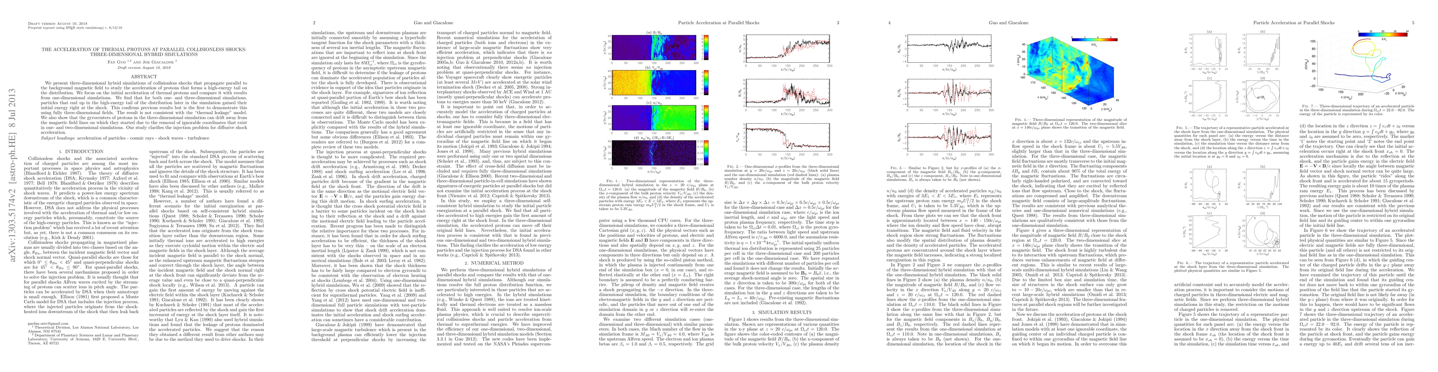 This paper uses three-dimensional hybrid simulations to study the initial acceleration of thermal protons at parallel collisionless shocks, confirming that protons gaining high-energy tails acquire their initial energy at the shock. It also highlights differences from one-dimensional simulations and refutes the "thermal leakage" model.