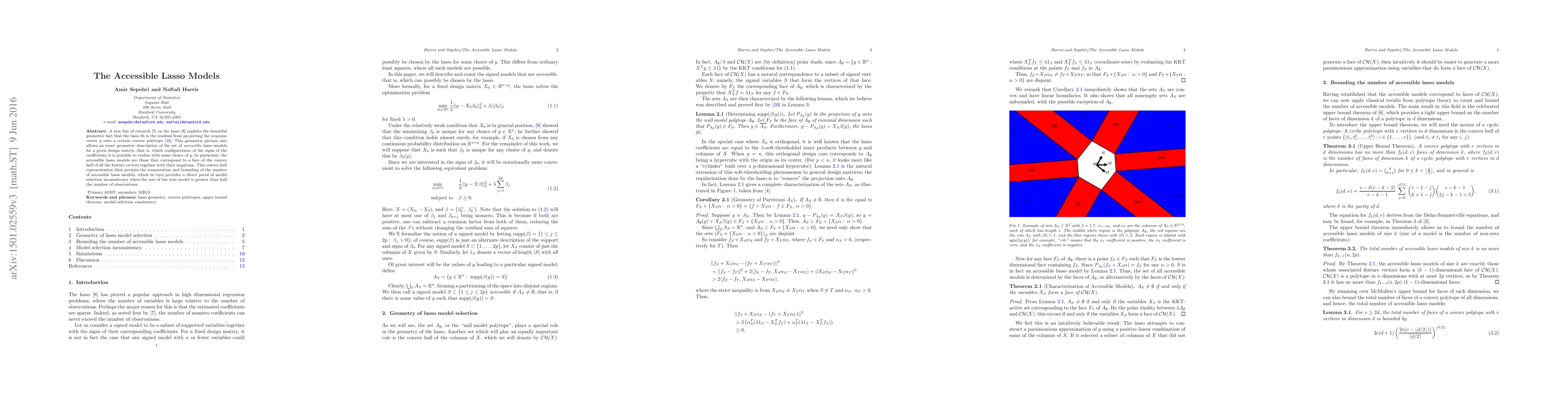 A new line of research on the lasso exploits the beautiful geometric fact that the lasso fit is the residual from projecting the response vector $y$ onto a certain convex polytope. This geometric picture also allows an exact geometric description of the set of accessible lasso models for a given design matrix, that is, which configurations of the signs of the coefficients it is possible to realize with some choice of $y$. In particular, the accessible lasso models are those that correspond to a face of the convex hull of all the feature vectors together with their negations. This convex hull representation then permits the enumeration and bounding of the number of accessible lasso models, which in turn provides a direct proof of model selection inconsistency when the size of the true model is greater than half the number of observations.